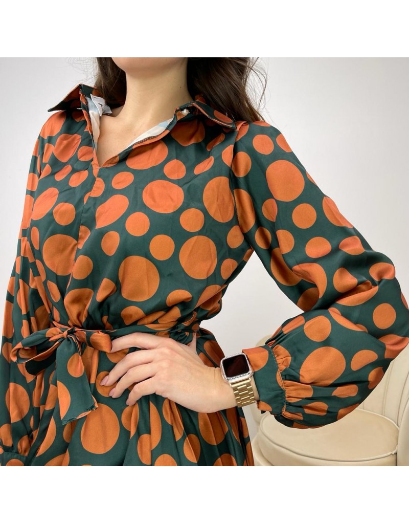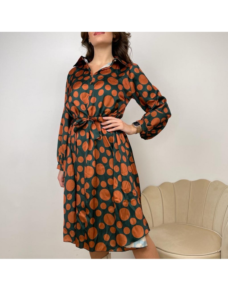 Dress chemisier midi con fantasia a pois,vestibilità morbida con cintura in vita e manica leggermete a sbuffo.