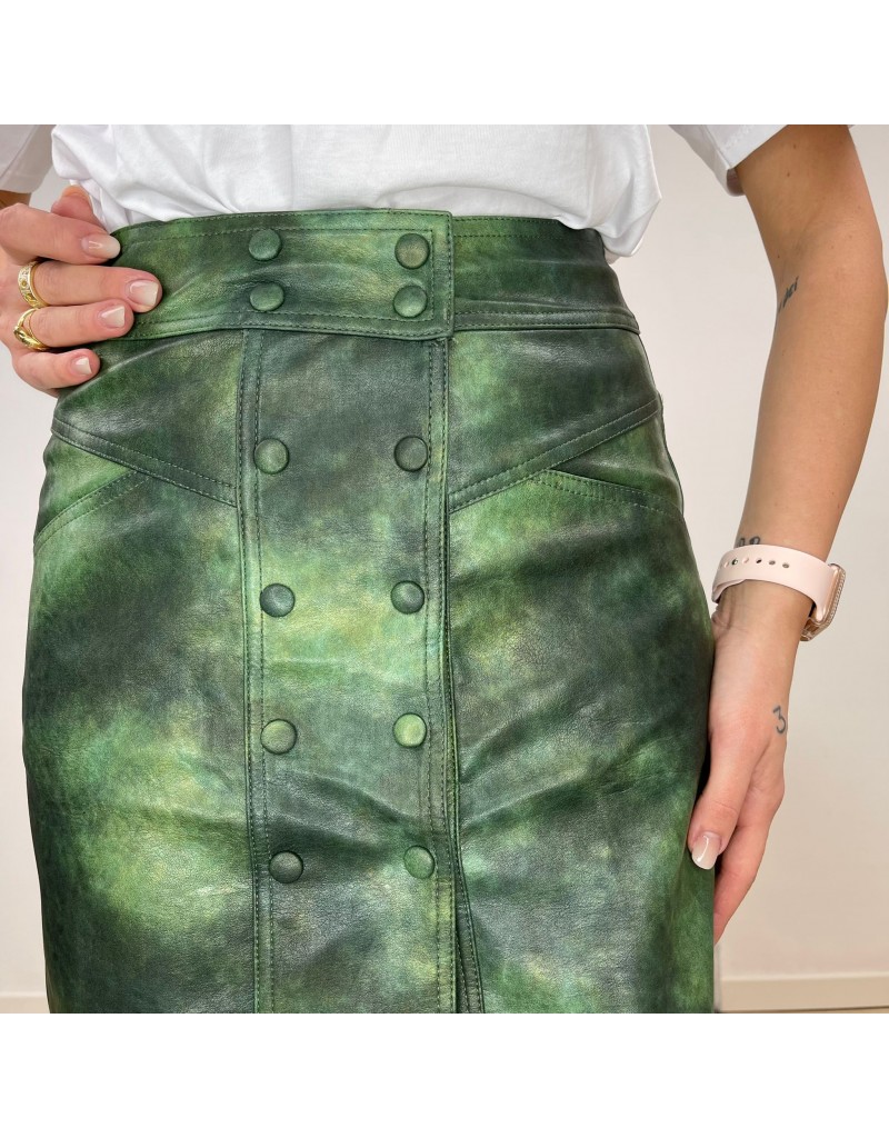 Minigonna in ecopelle,chiusura doppio bottone metalicco sulla parte frontale