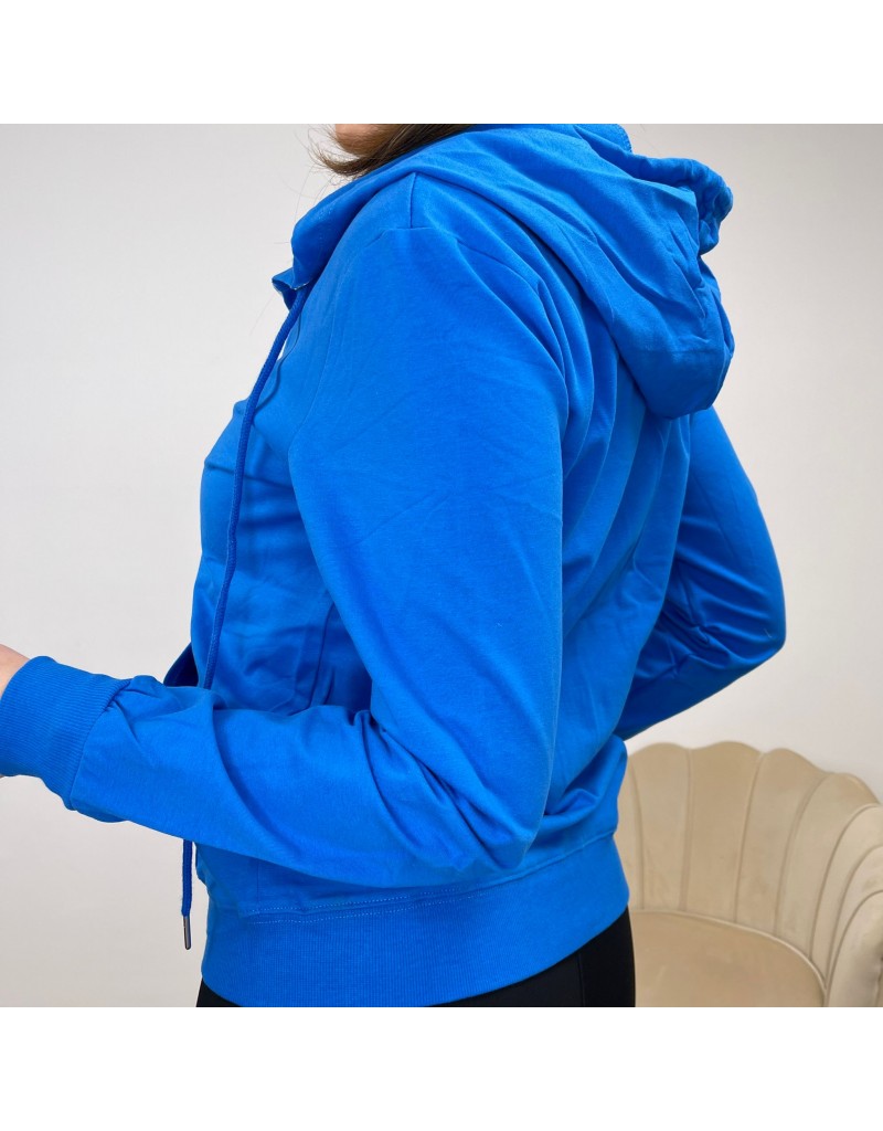 Felpa basic con cappuccio,chiusura frontale con zip.