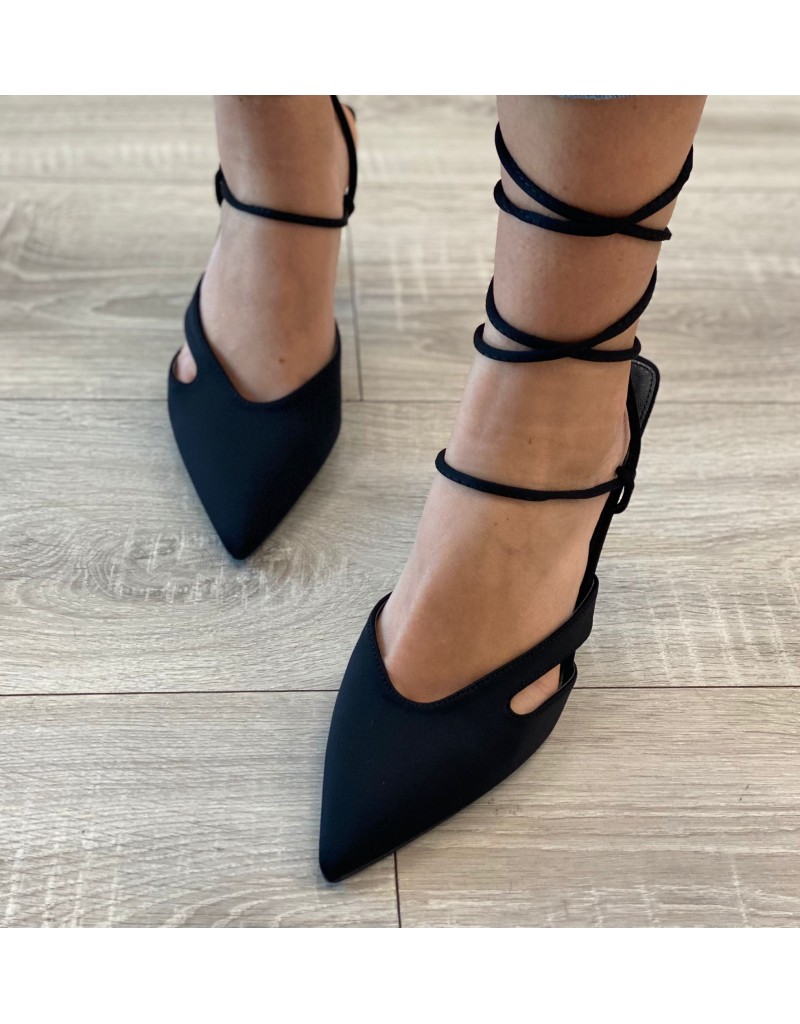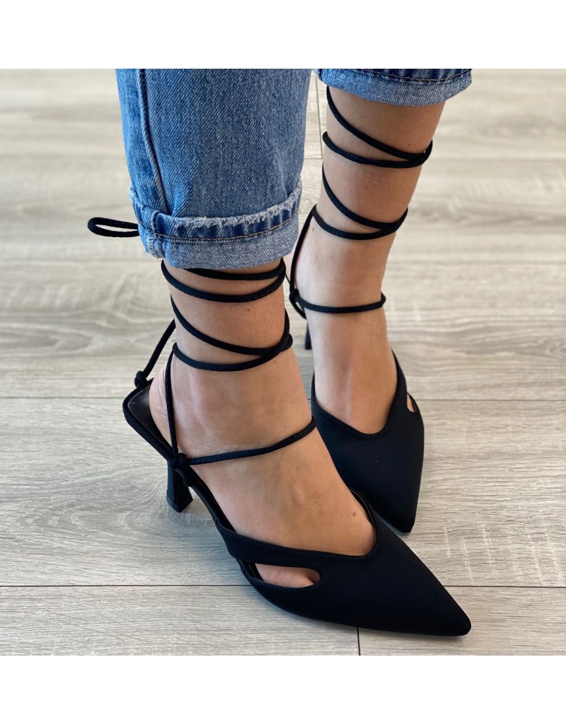 Dècolletè in tessuto a punta,chiusura con lacci alla caviglia.
