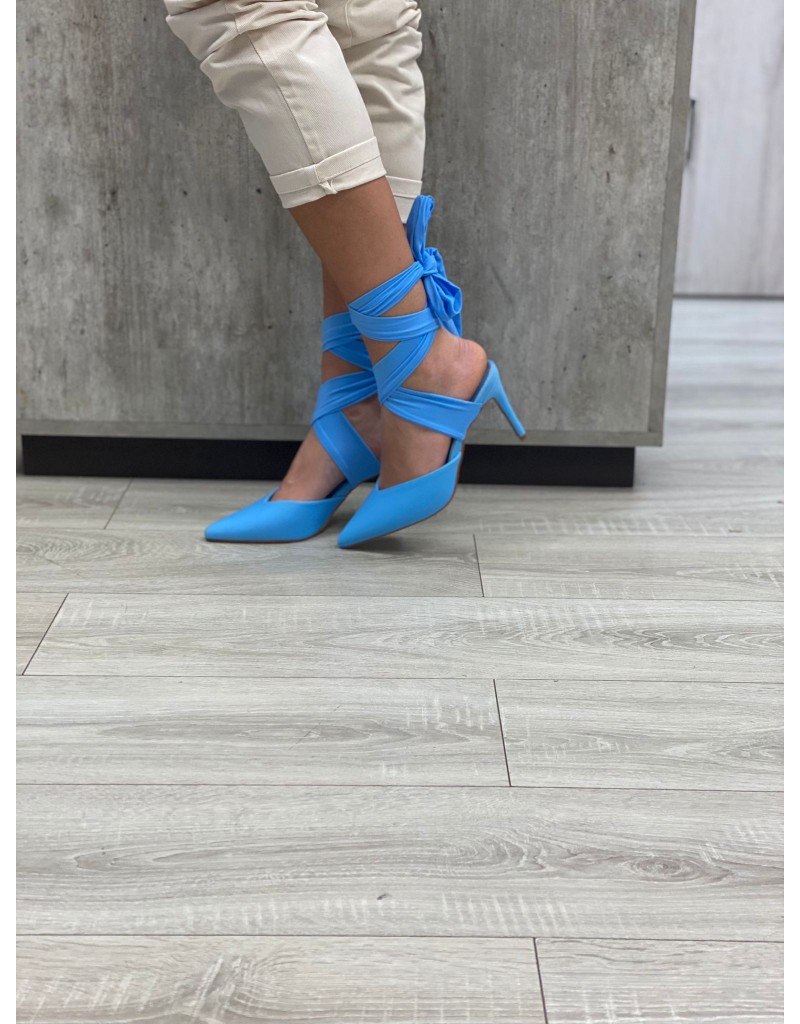Dècolletè a punta,chiusura con lacci alla caviglia.