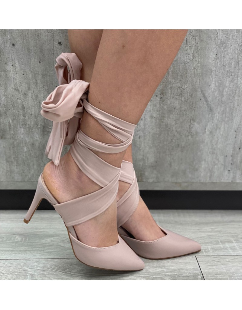 Dècolletè a punta,chiusura con lacci alla caviglia.