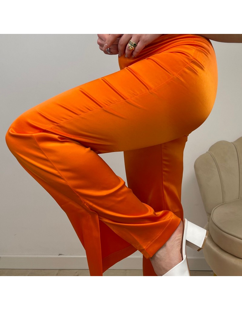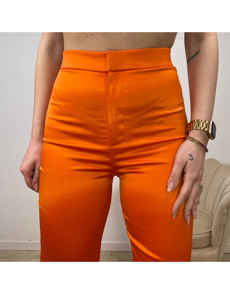 Pantalone a vita alta aderente satinato,gamaba a palazzo