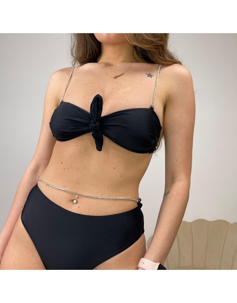 - Parte superiore a fascia con nodo anteriore ,bretelle sottili in strass e coppe interne estraibili.