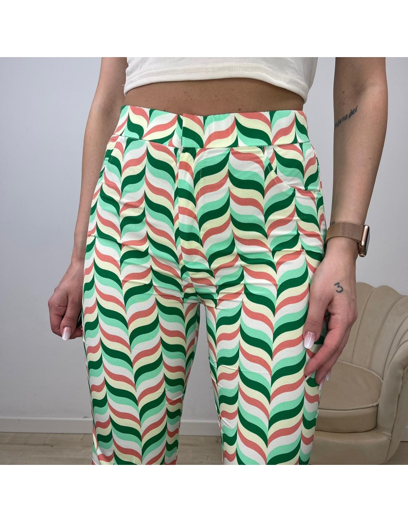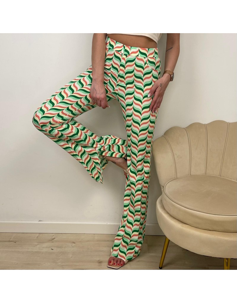 Pantalone a zampa fantasia onde, vita alta.