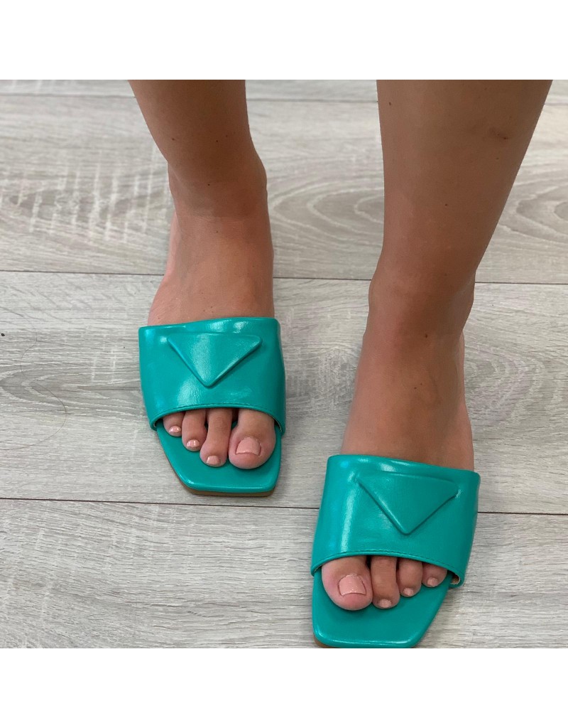 Ciabatta in ecopelle, con fascia larga, e punta squadrata.