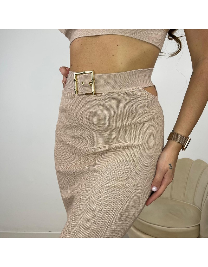 - Gonna tubino con cut out e fibbia in metallo oro.
