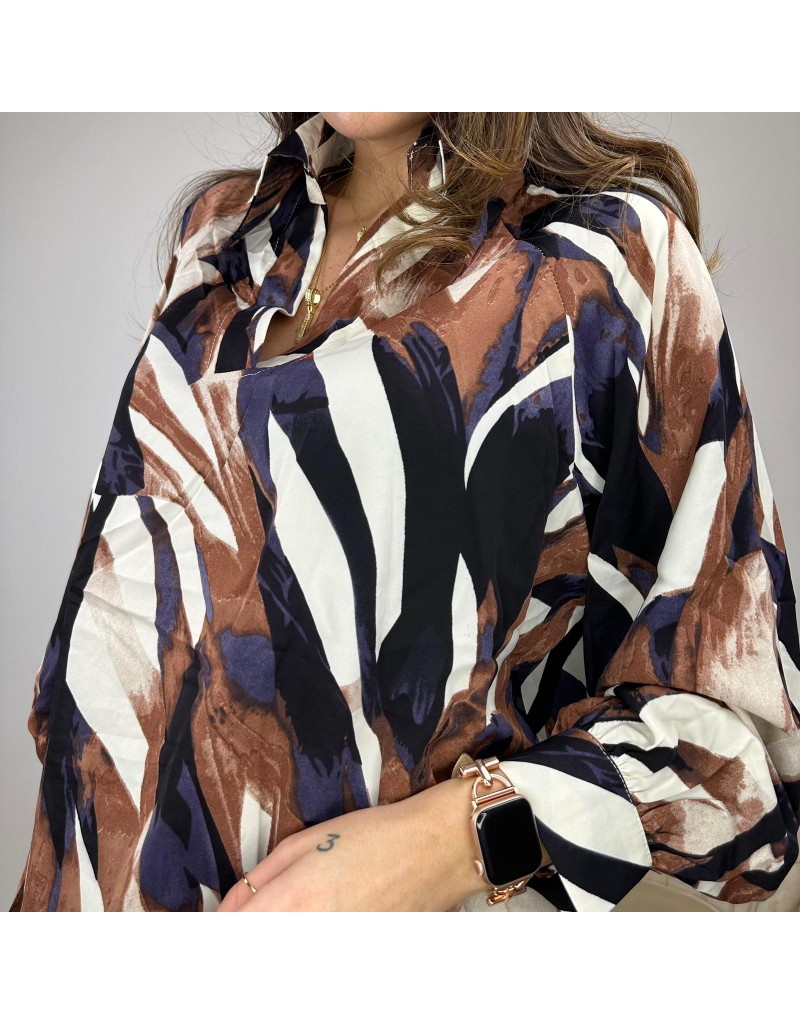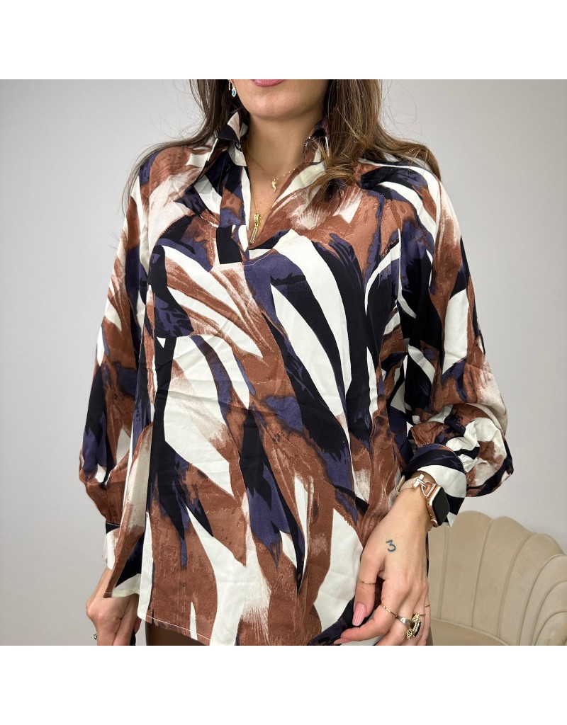 Blusa multicolor , con colletto a camicia,