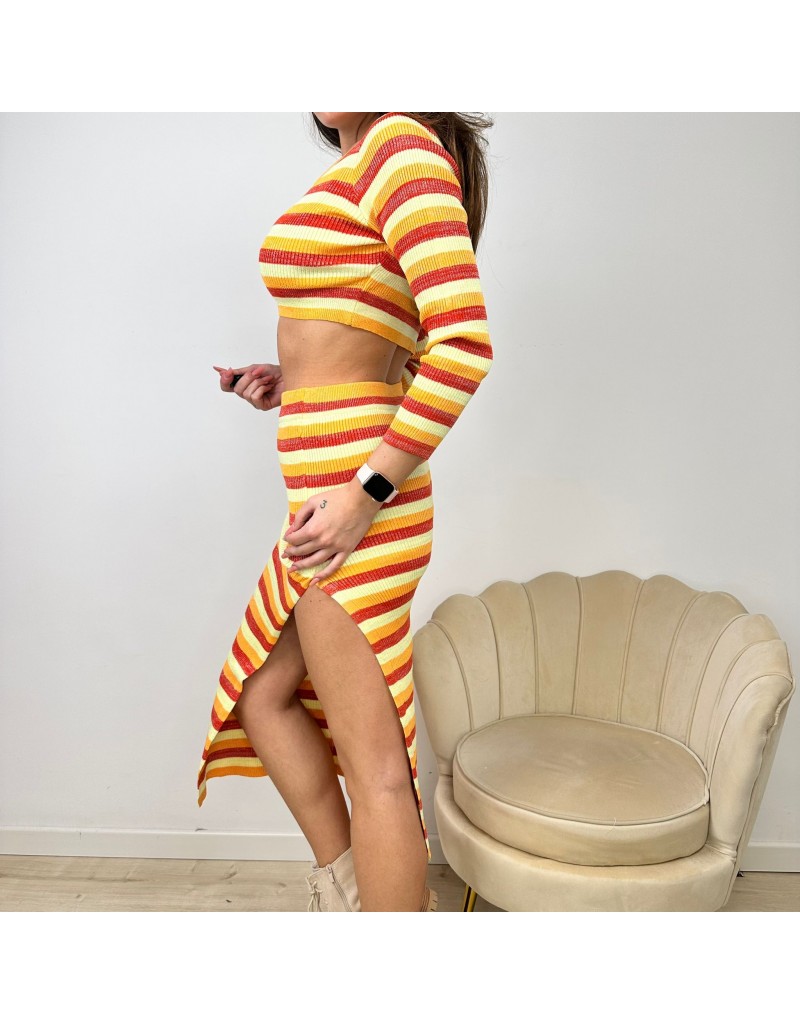 Co ord set in maglia laminata, a coste, fantasia righe composto da :