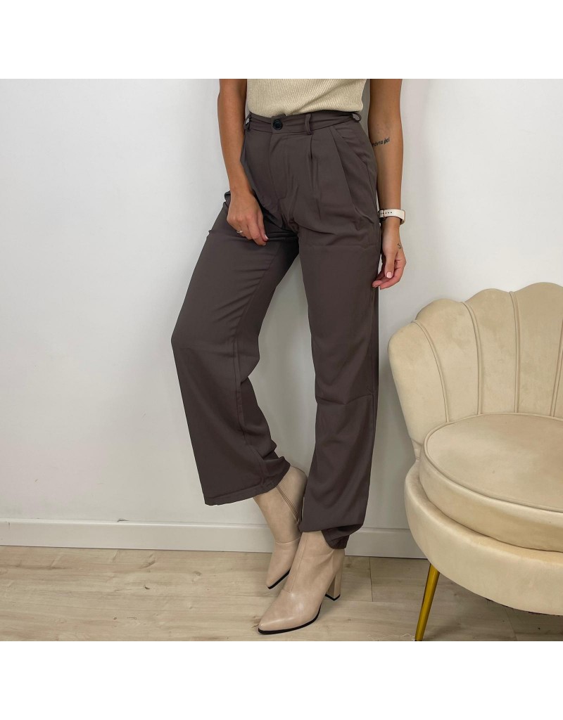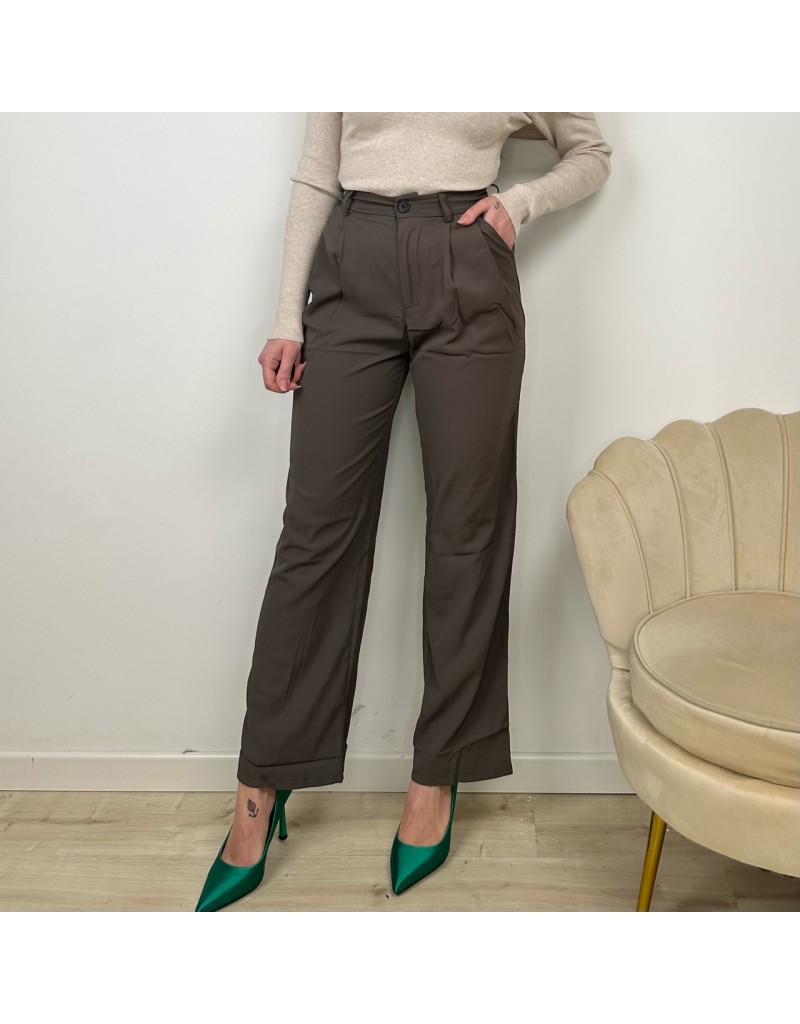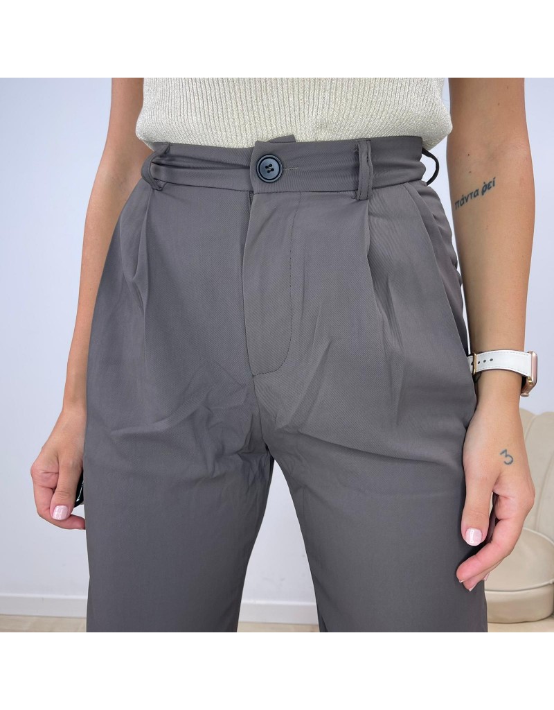 Pantaloni Palazzo, vita alta, con bottone e passanti.