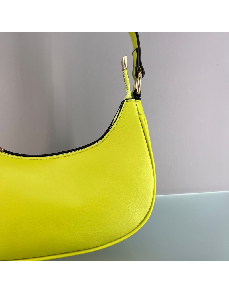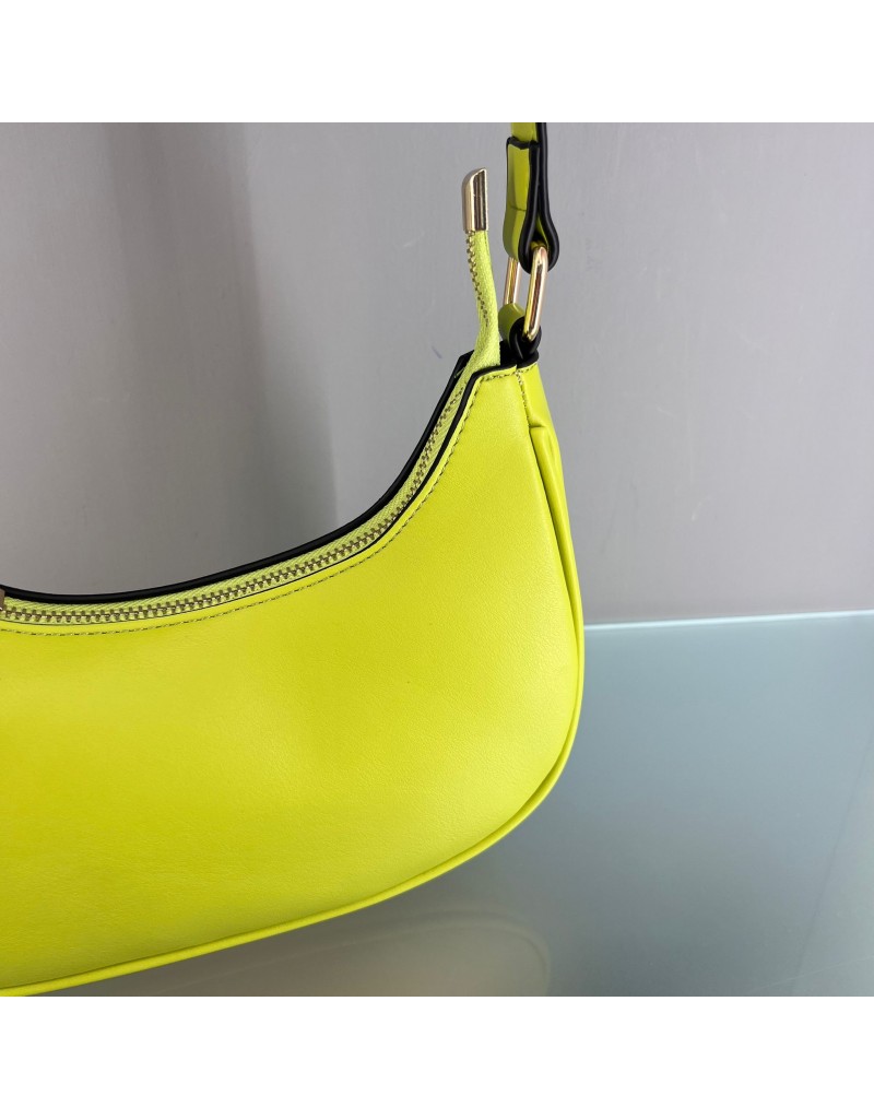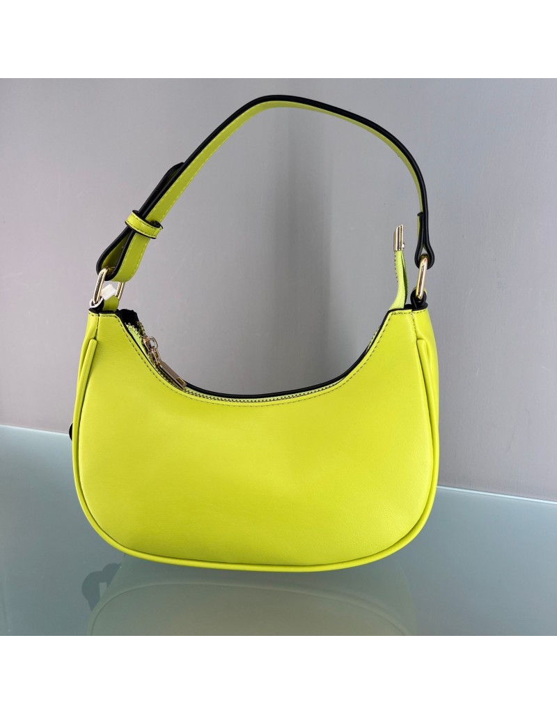 Borsa in ecopelle a forma di mezzaluna,chiusura con zip e tracolla regolabile e rimovibile.