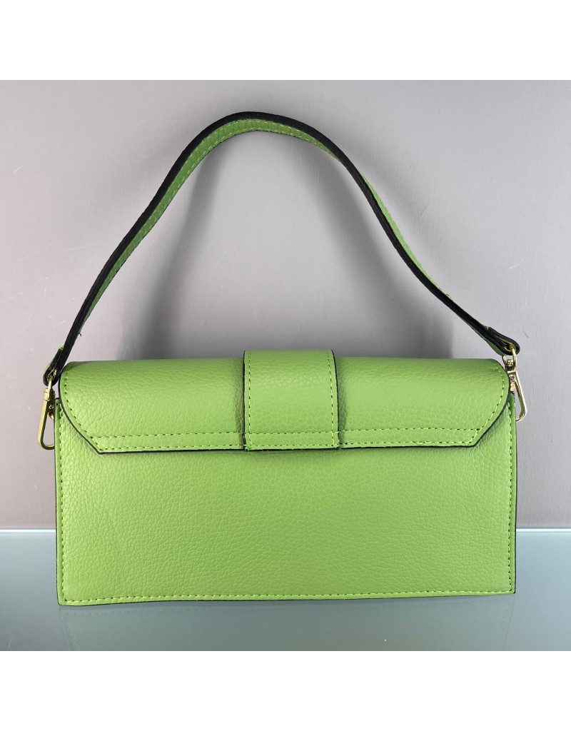 Borsa mini in vera pelle,parte superiore rigida con chiusura magnetica,manico singolo arrotondato e tracolla regolabile e removibile.