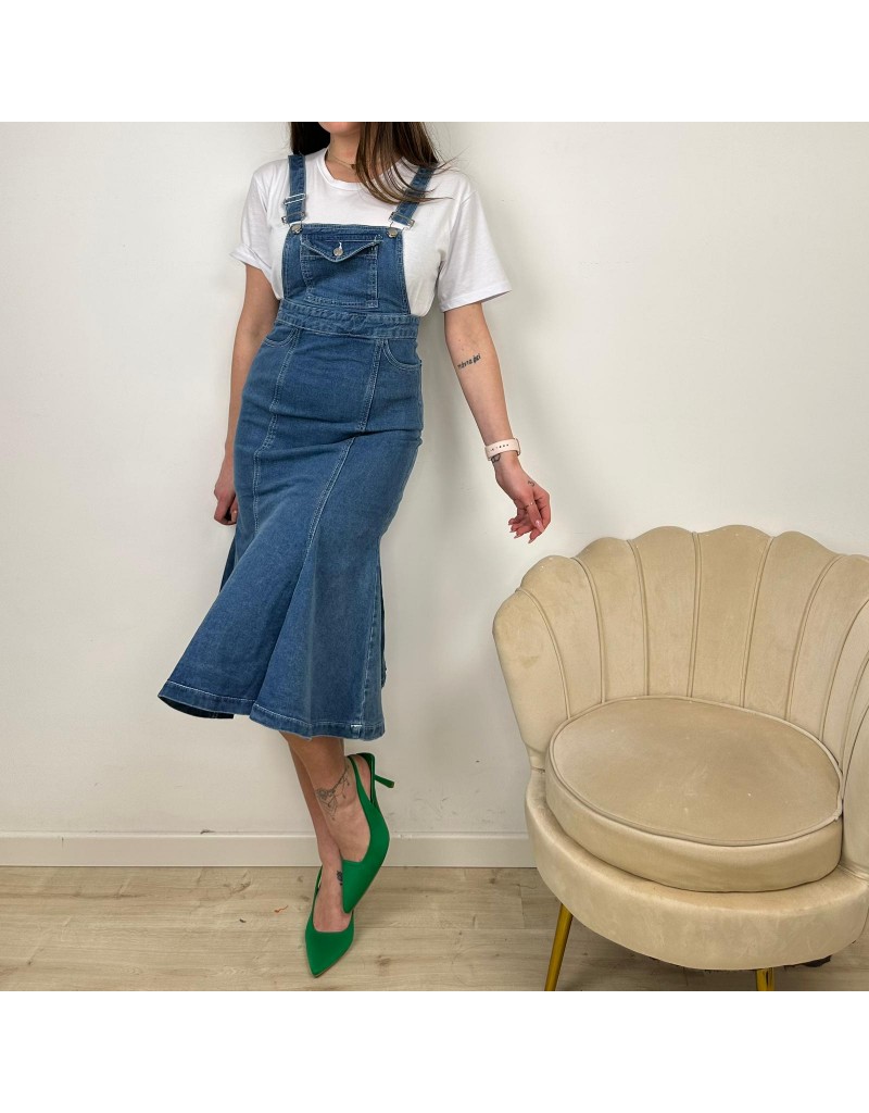 Salopette midi, in denim, tagli svasato.