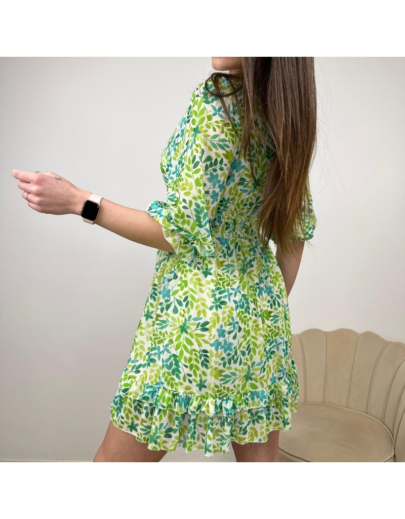 Dress fantasia floreale, con fiocco, con punto smoke in vita.