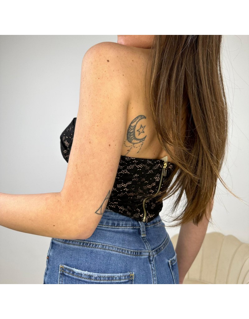 Bustier in pizzo, con scollo a cuore.