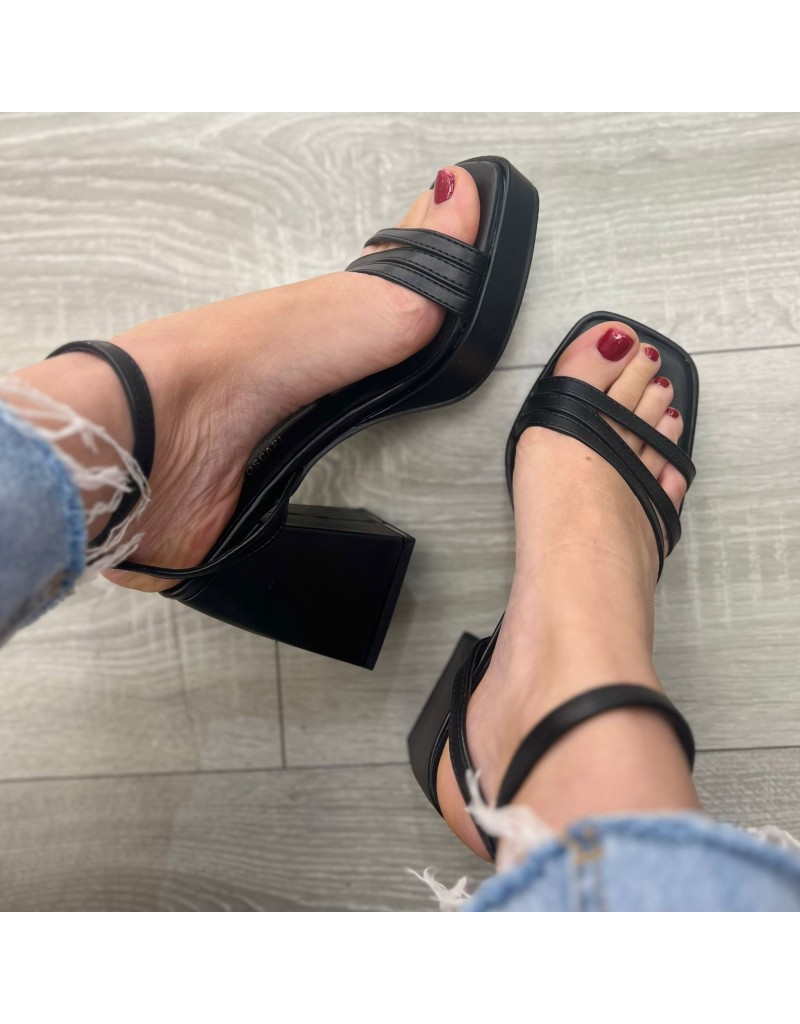 Sandali in ecopelle, con fascette trasversali, e cinturino regolabile alla caviglia.