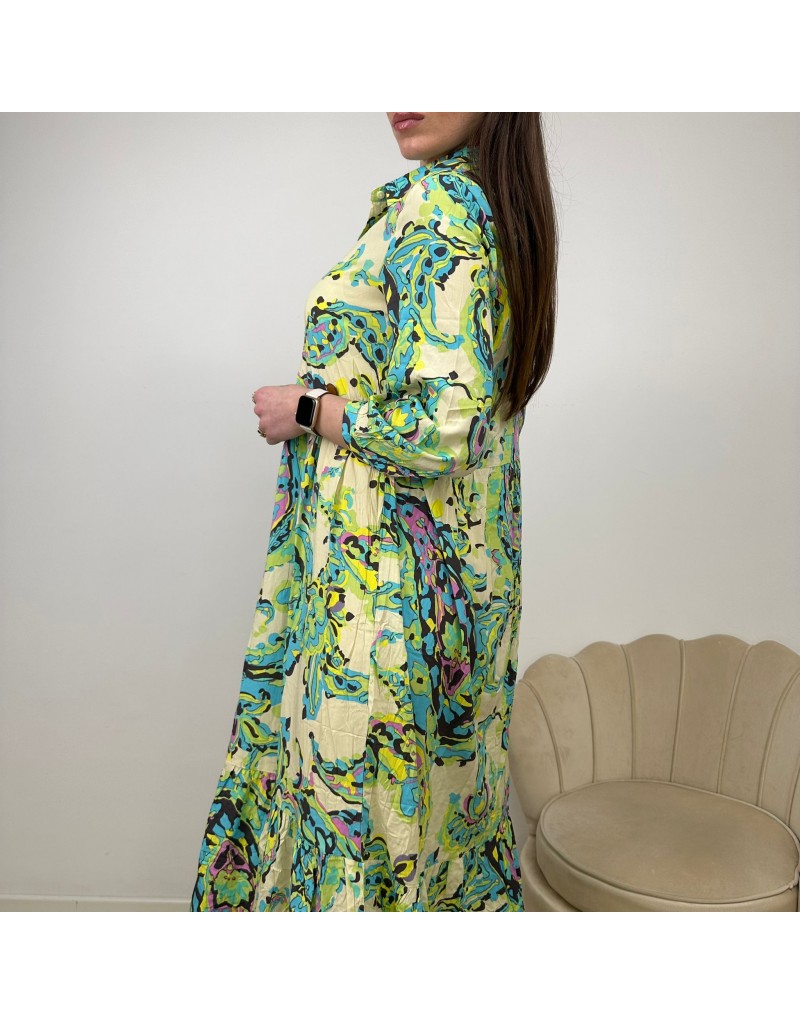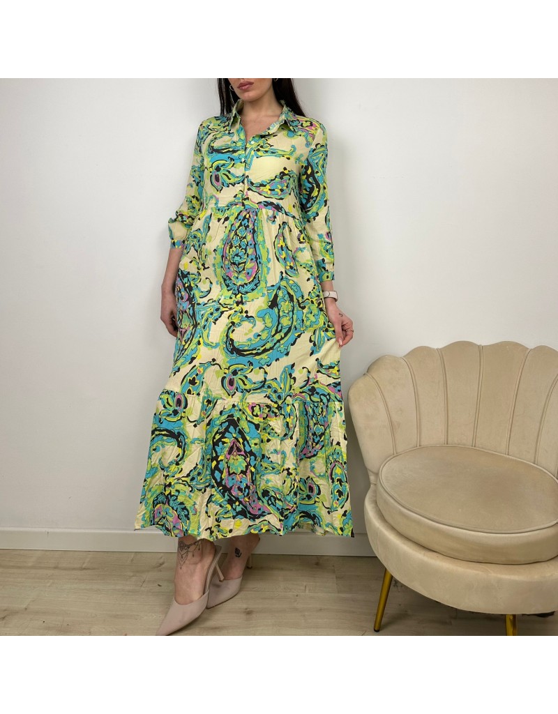 Long dress fantasia paisley, ampio, con balze, E maniche lunghe.