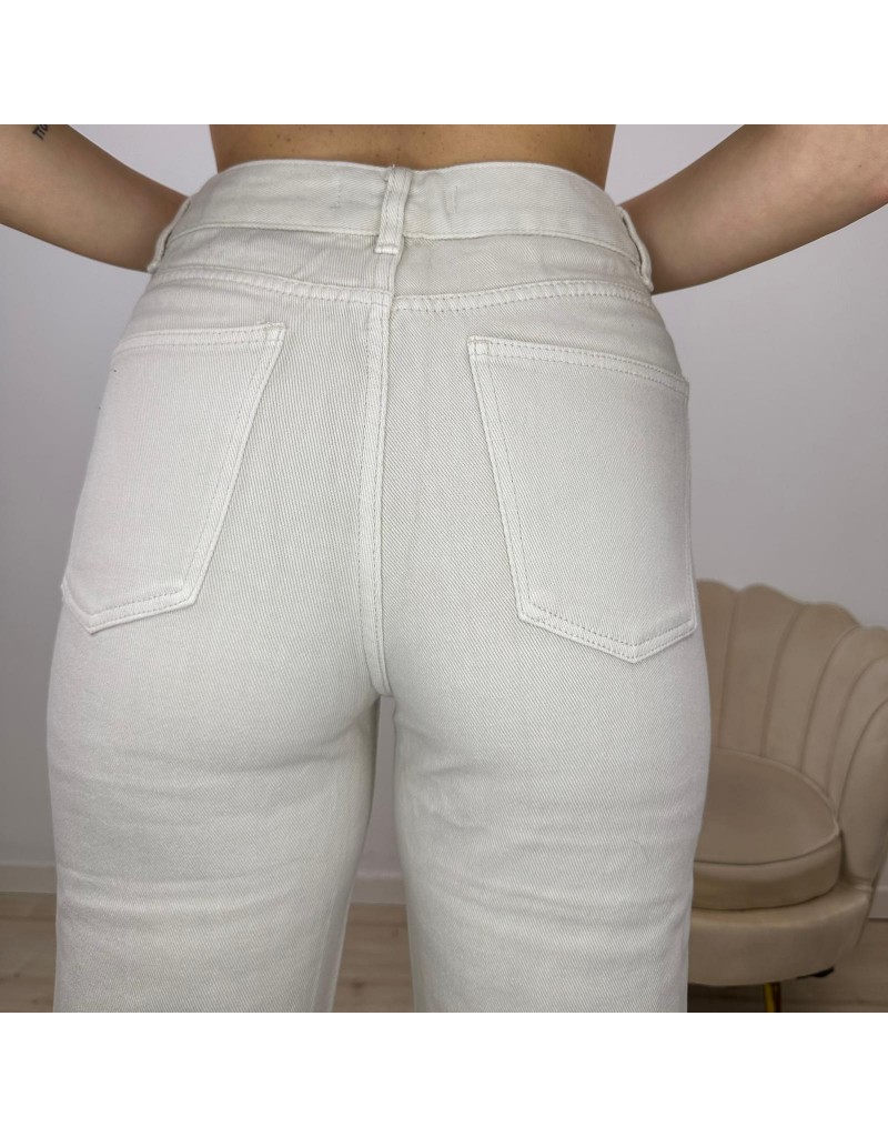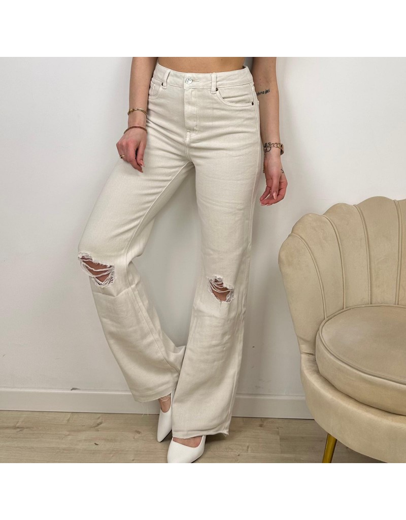 Jeans 5 tasche, modello wide leg, a vita alta, con strappi sulle ginocchia