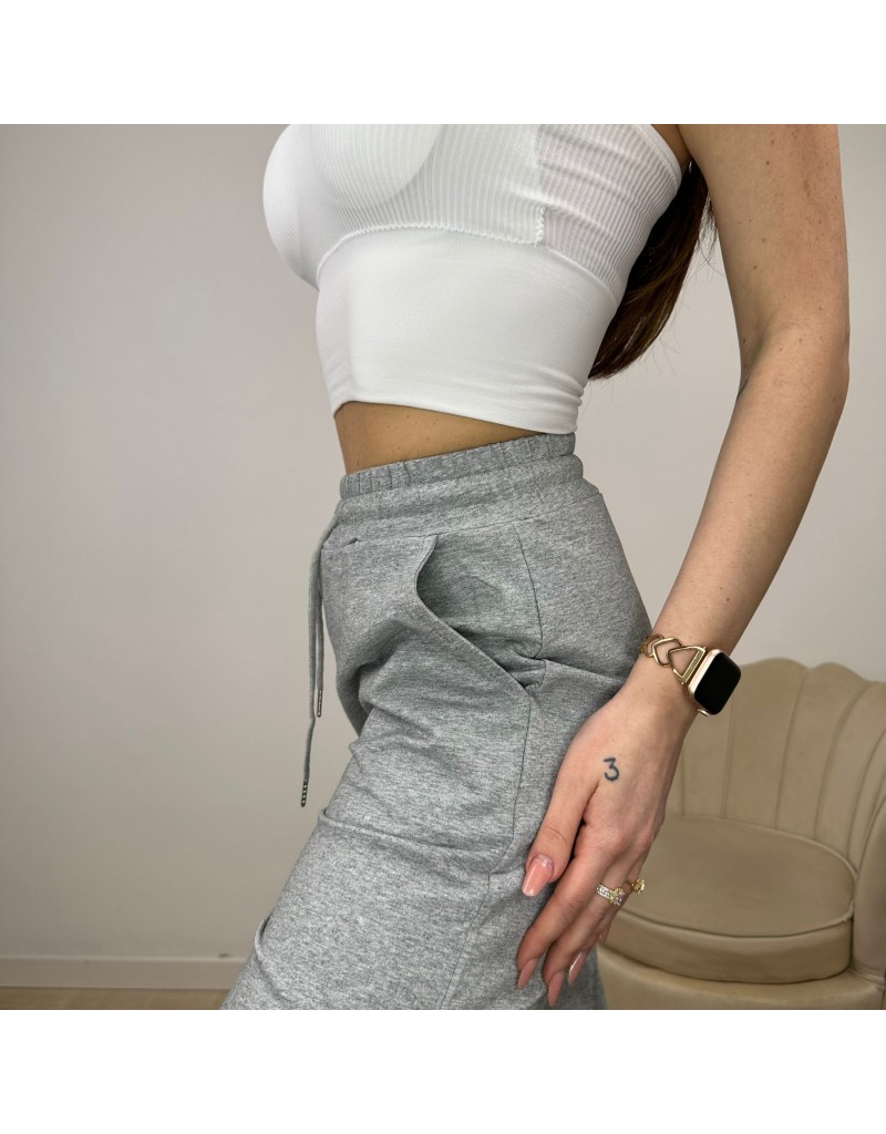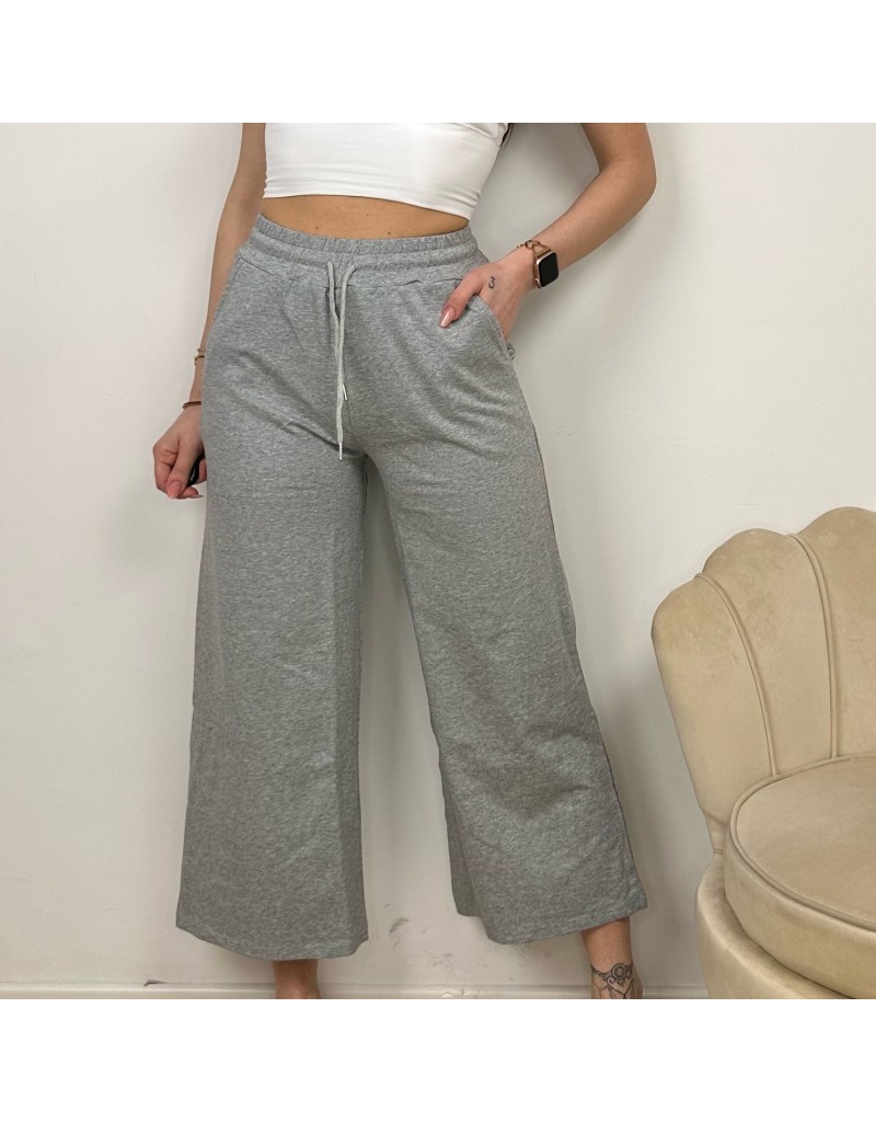 Pantafitness modello wide leg, con elastico e coulisse in vita e tasche laterali.