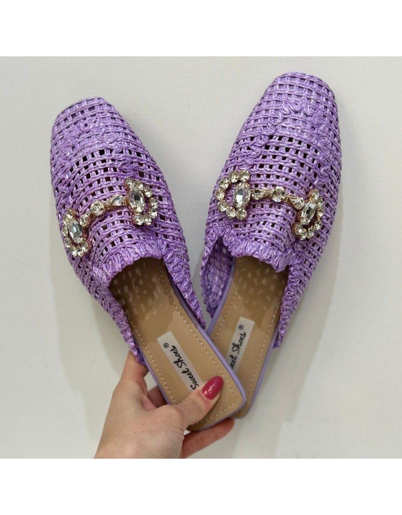 Mocassino sabot in ecopelle intrecciata con morsetto gioiello sulla tomaia.