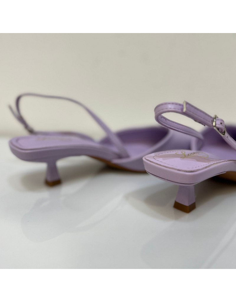 Slingback con cinturino elastico punta affusolata e tacco a rocchetto di 3 cm.