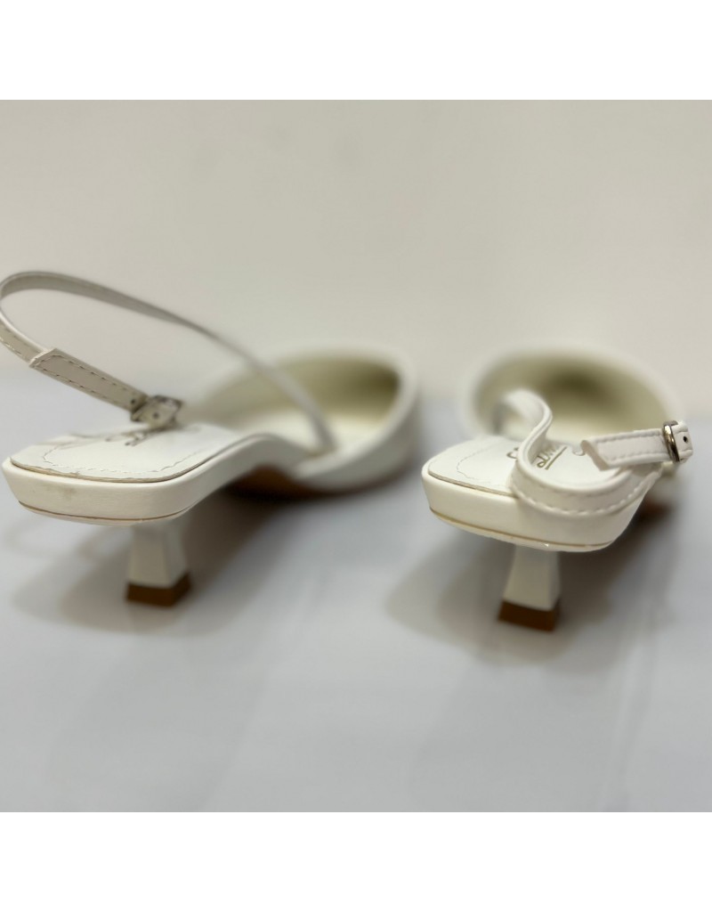 Slingback con cinturino elastico punta affusolata e tacco a rocchetto di 3 cm.
