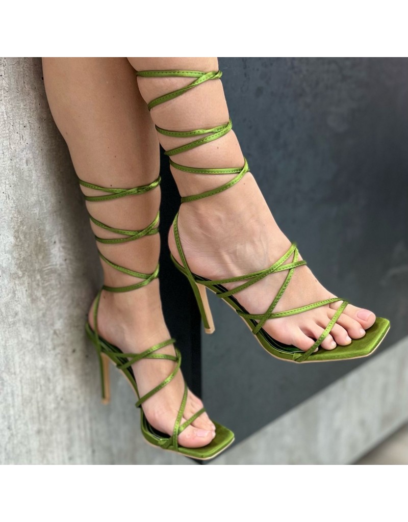 Sandalo con lacci al polpaccio, in ecopelle.