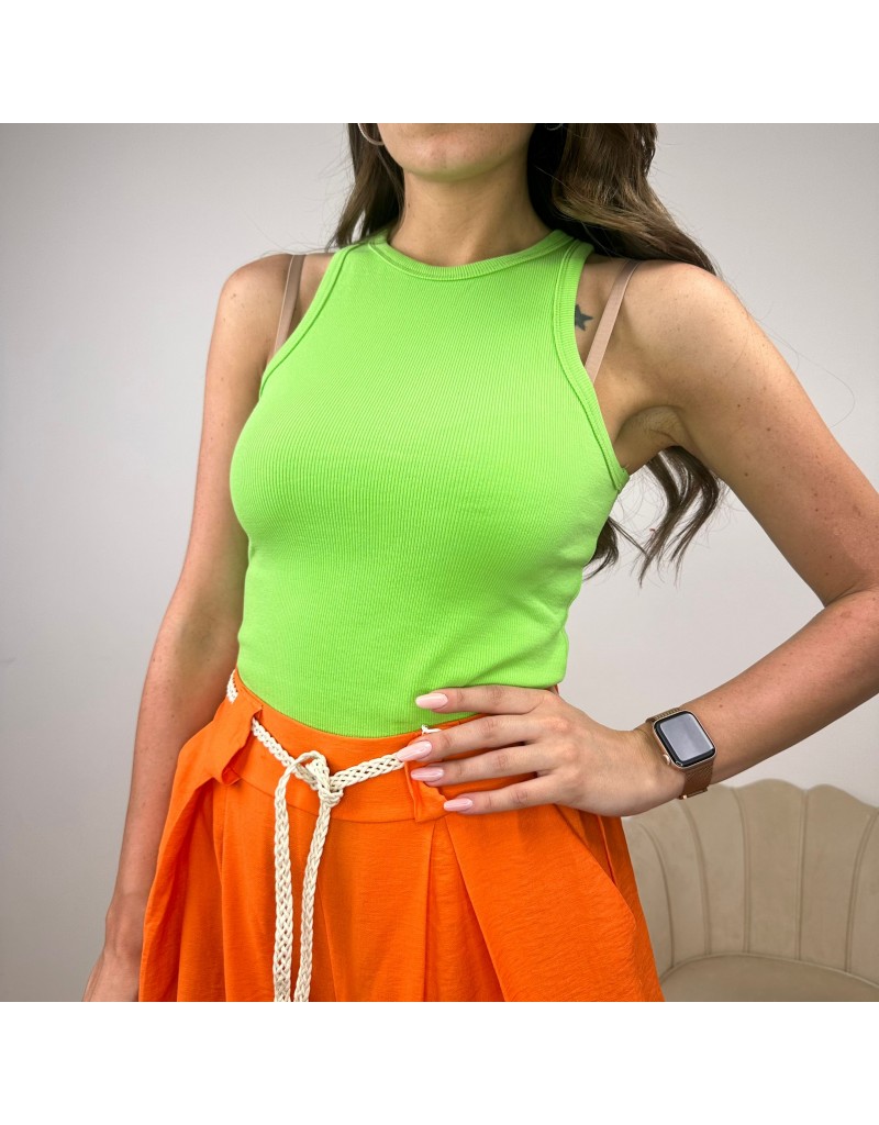 Top halter, in maglia a costine.