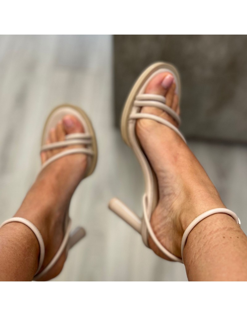 Sandalo in ecopelle, con fascette sottili , punta stondata