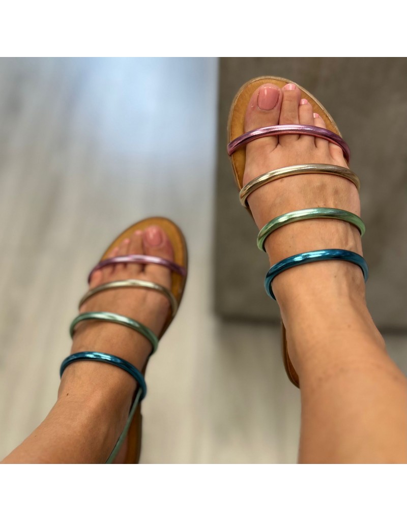 ciabatta in ecopelle, con fascette multicolor, e suola antiscivolo