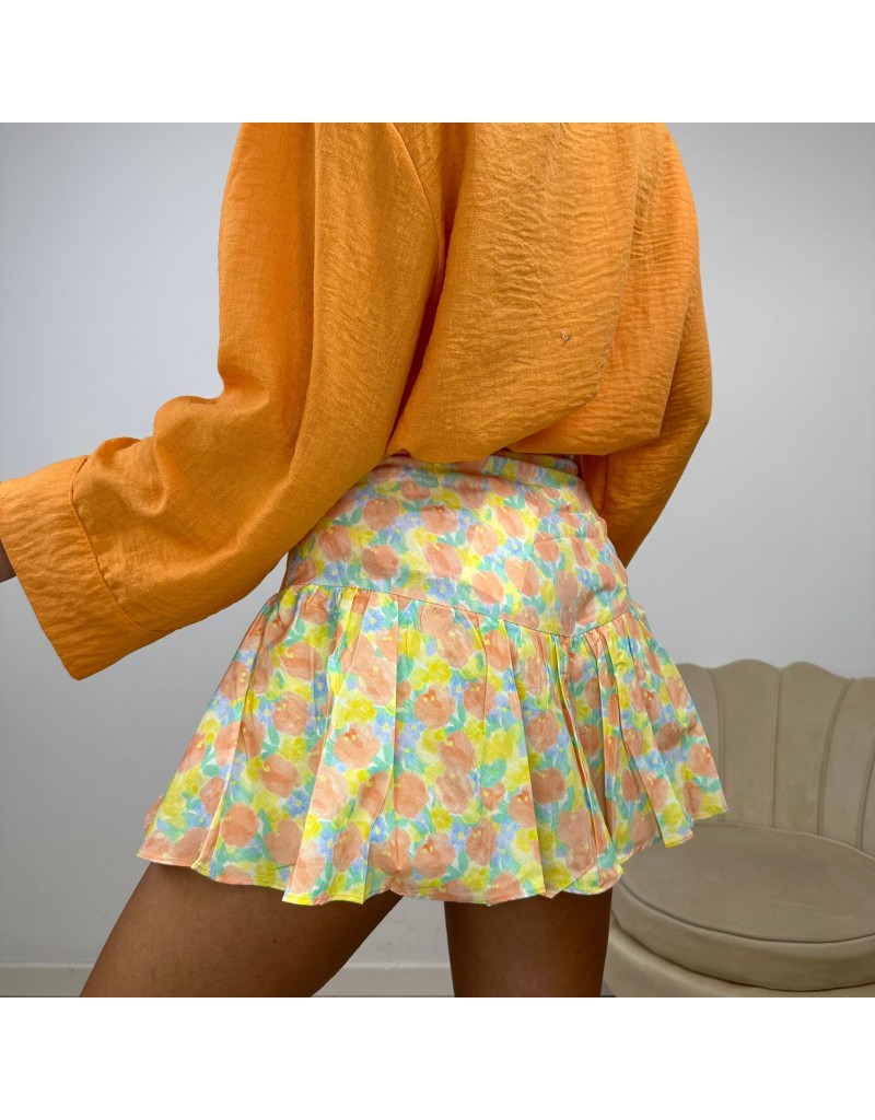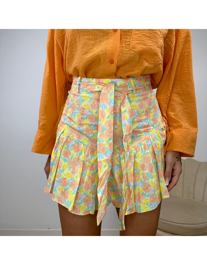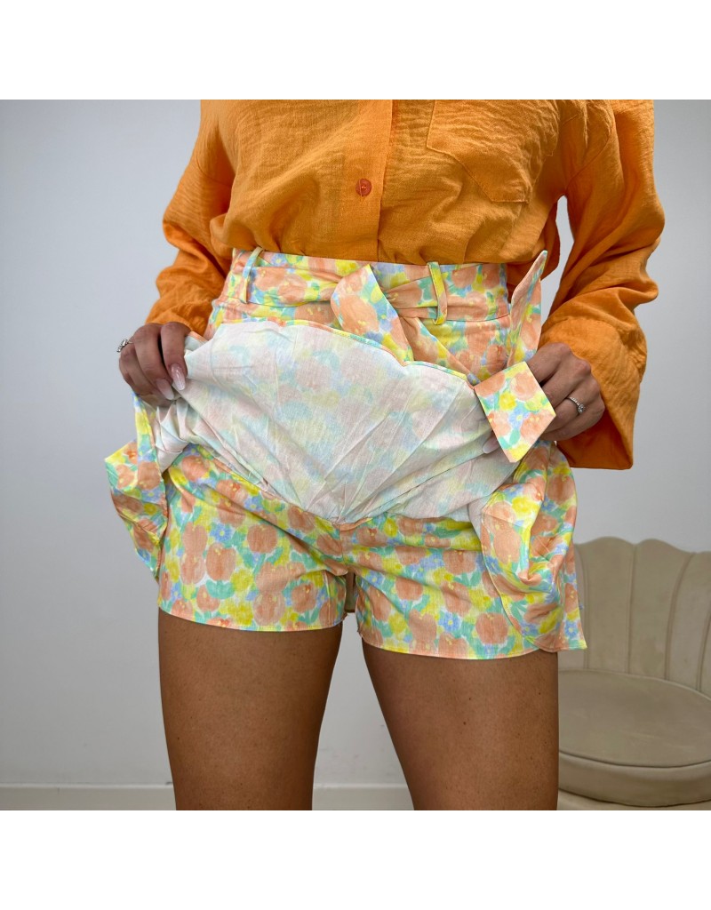 Gonna short con volant fantasia floreale.