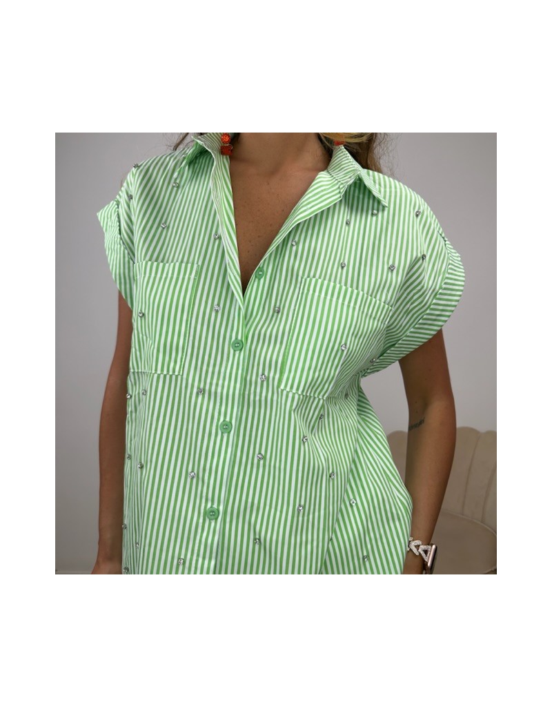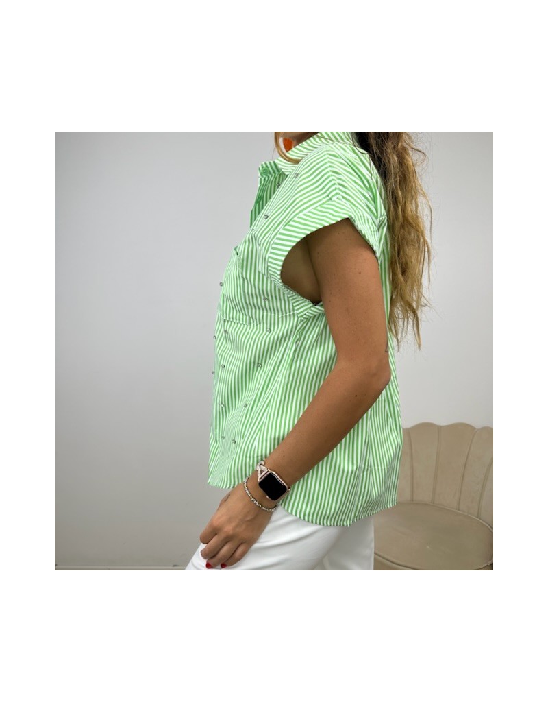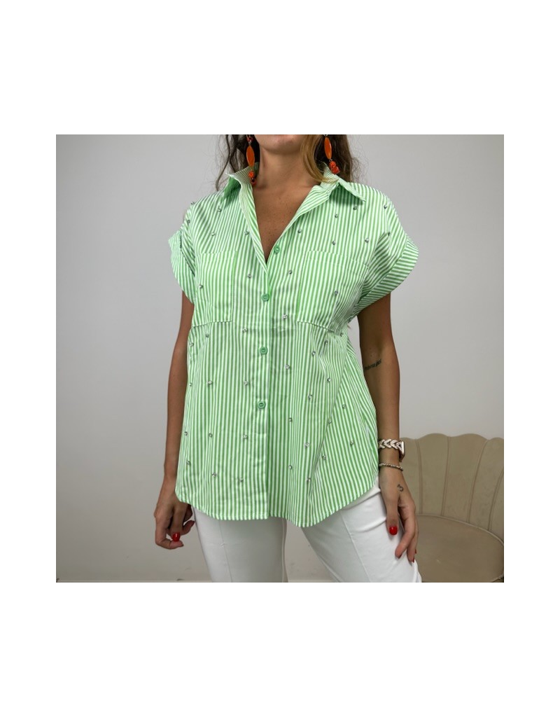 Camicia a fantasia a righe con strass.