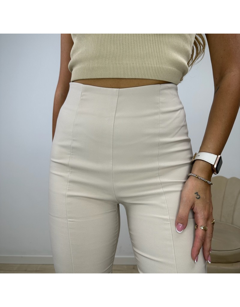 Pantalone a vita alta, aderente, con spacchetti alla caviglia.