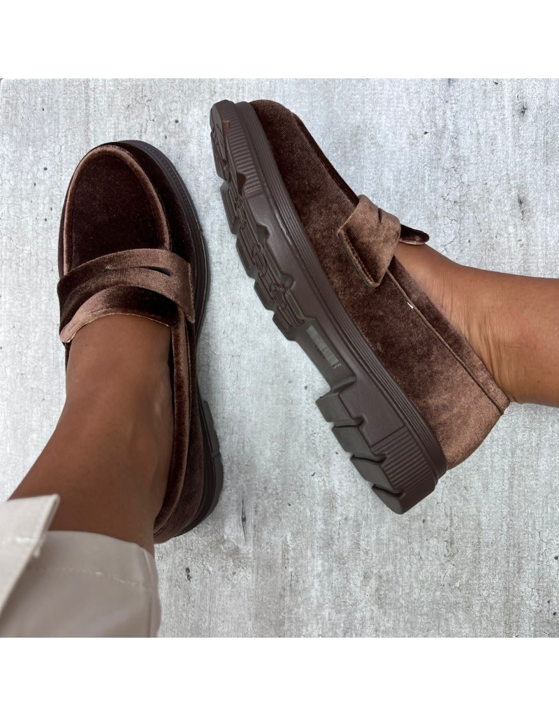 Mocassini in velluto con Fondo gommato alto 4cm