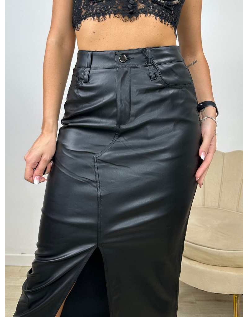 Gonna in eco-pelle 5 tasche, spacco centrale.