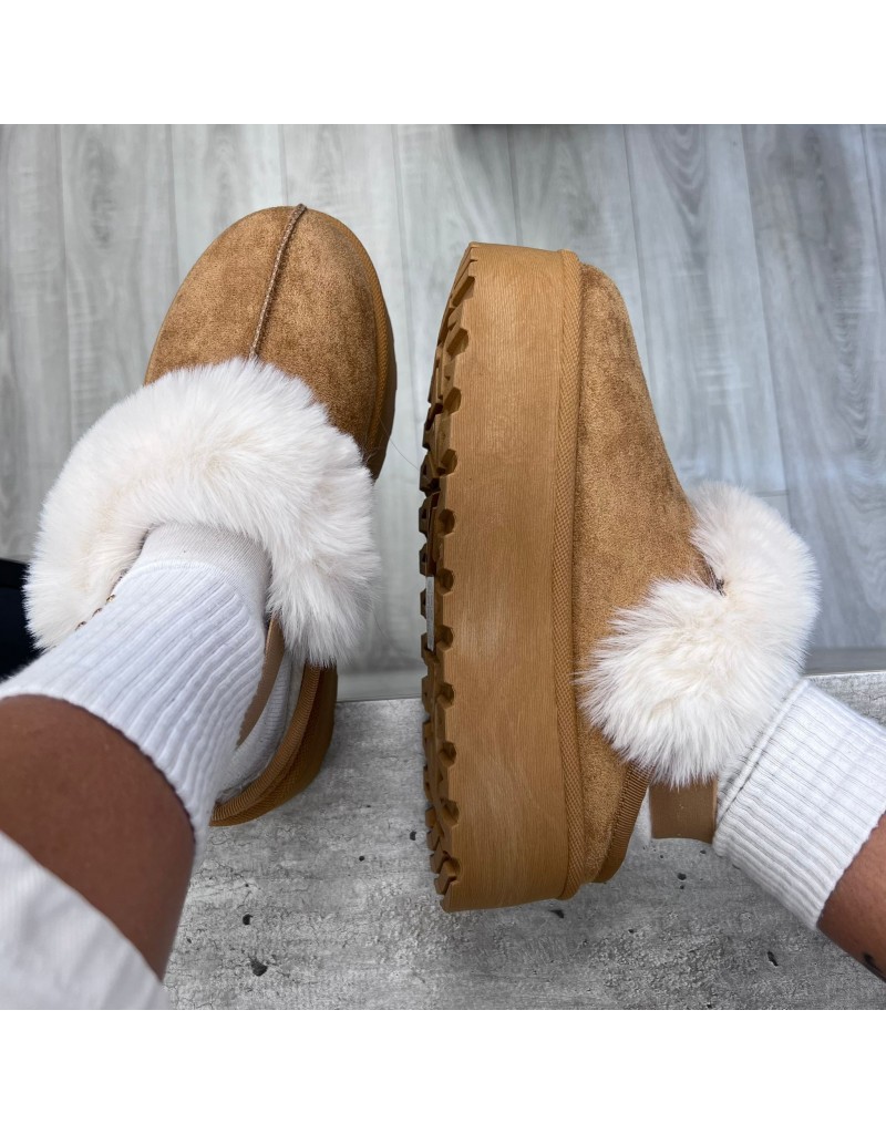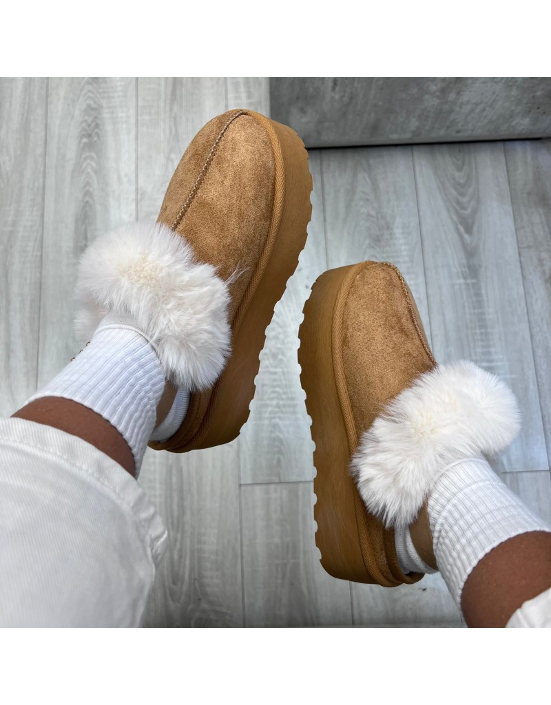 Sabot montone, interno e orlo con pelliccia sintetica cinturino elasticizzato.