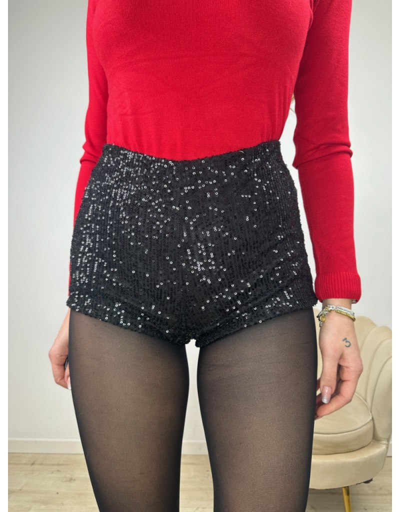 Short modello coulotte in paillettes con molla in vita.