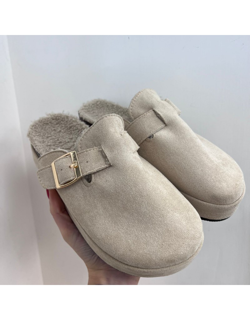Ciabatta in camoscio,con pelliccia interna.