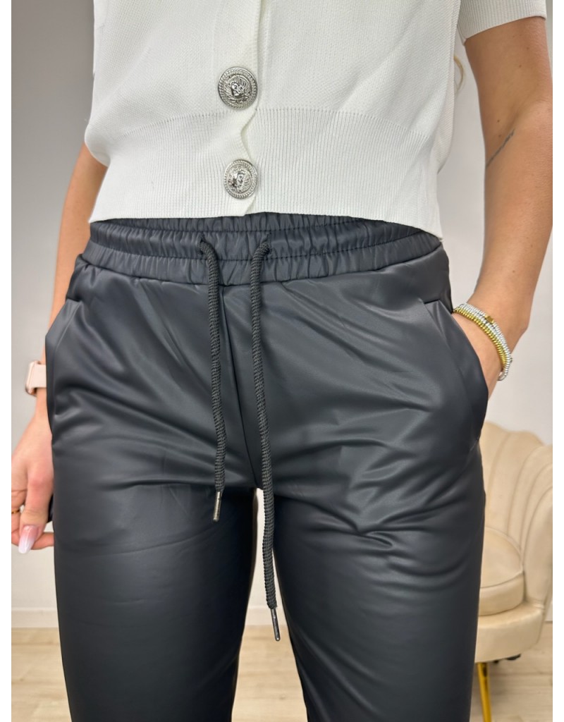 Pantaloni in ecopelle interno felpato, con molla in vita.