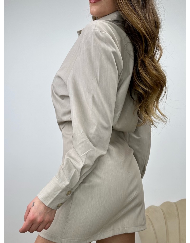 Vestito camicia con pinces e taglio in vita.