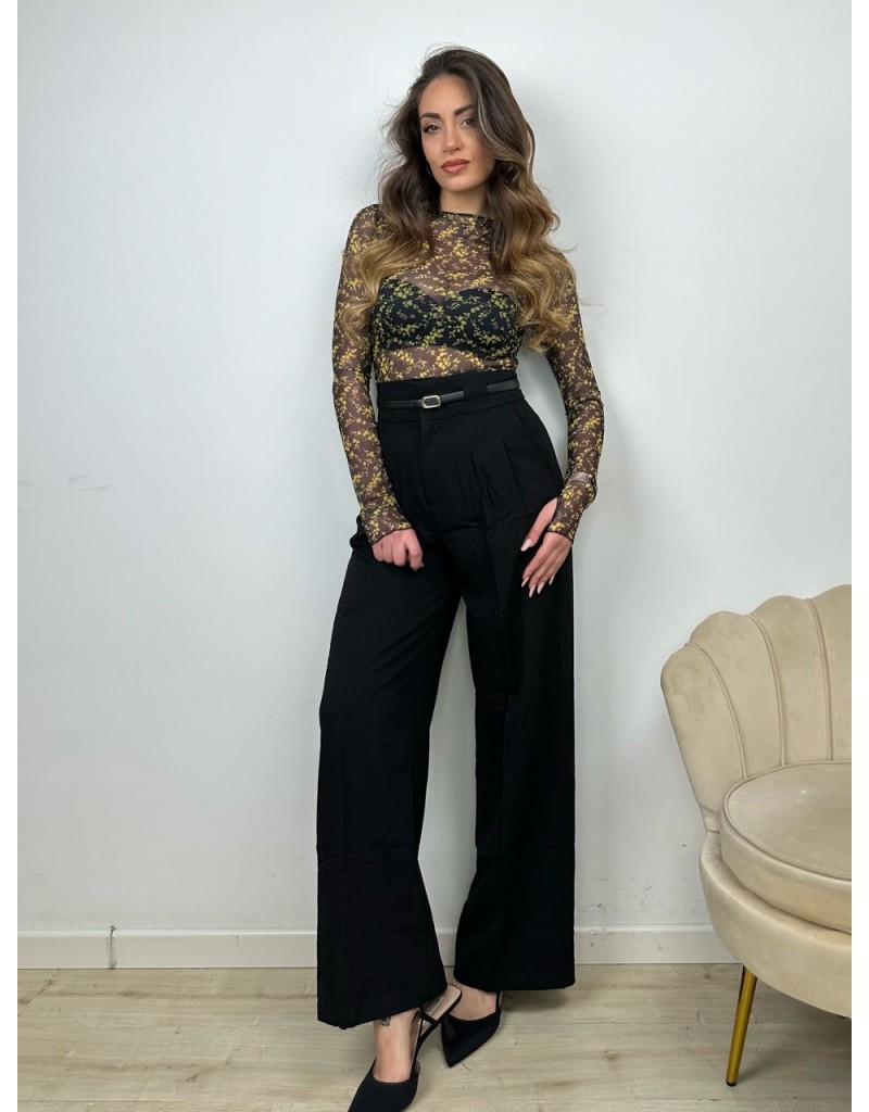 Pantaloni TopQuality con cinturino, modello a vita alta con gamba larga.