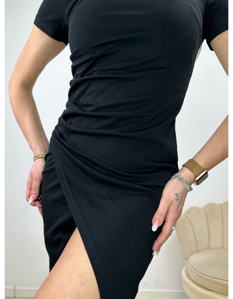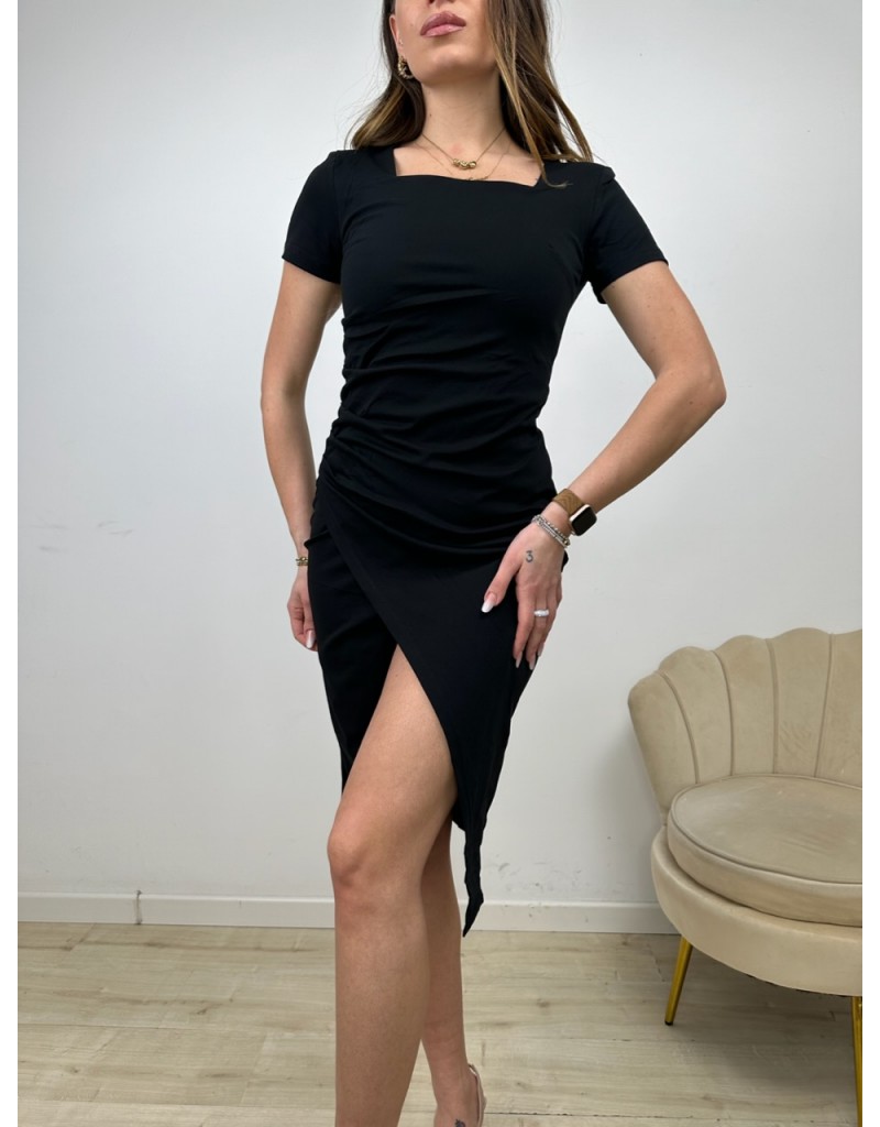 Dress a mezza manica con drappeggio laterale e scollo quadrato.