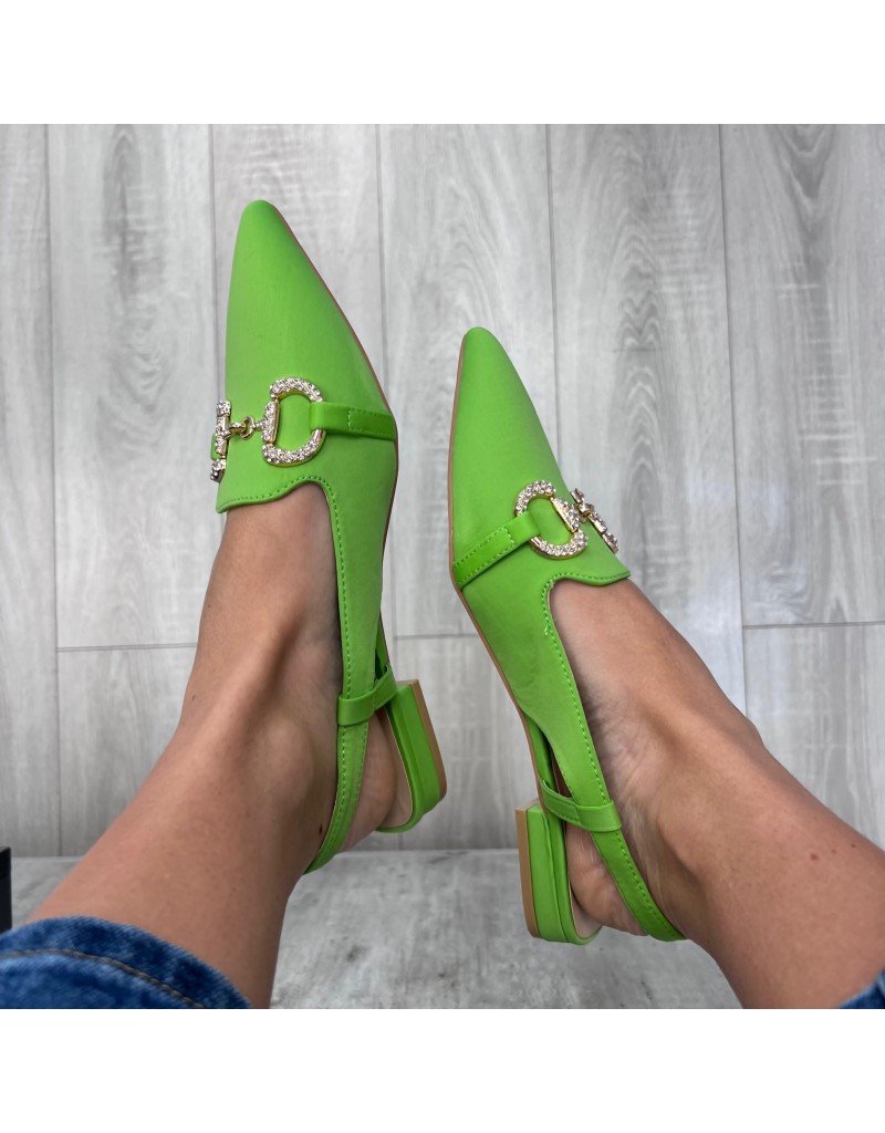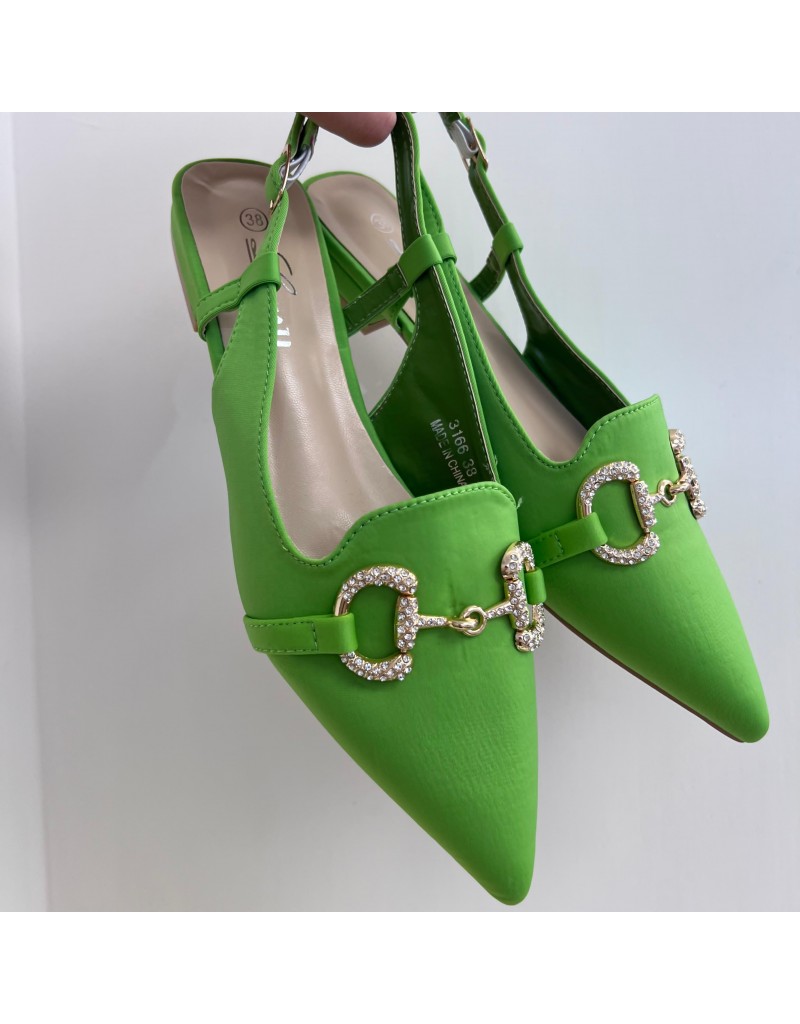 Slingback in tessuto licra con punta e applicazione.