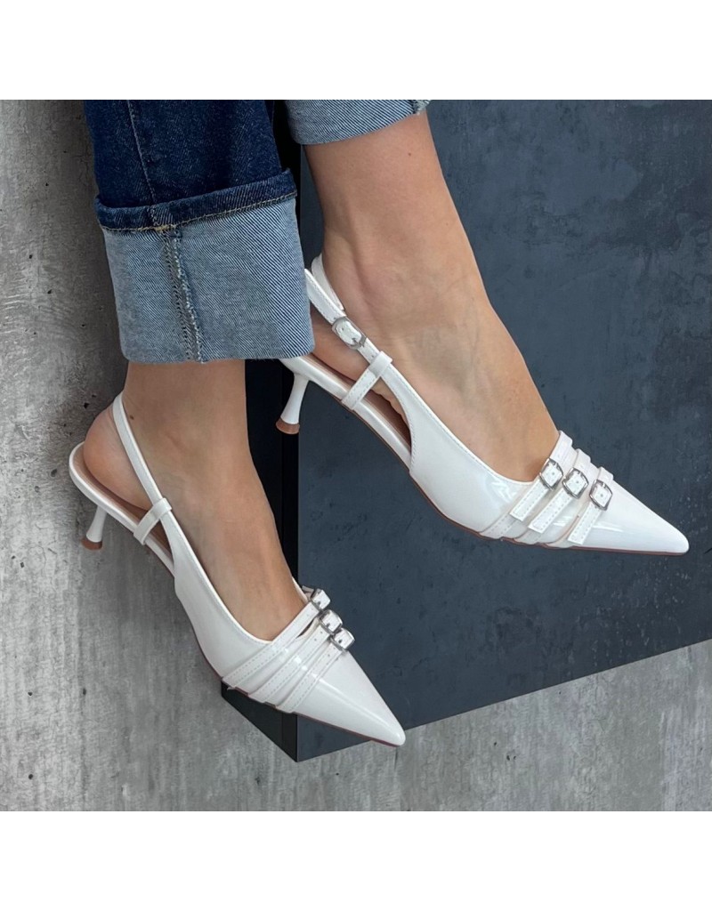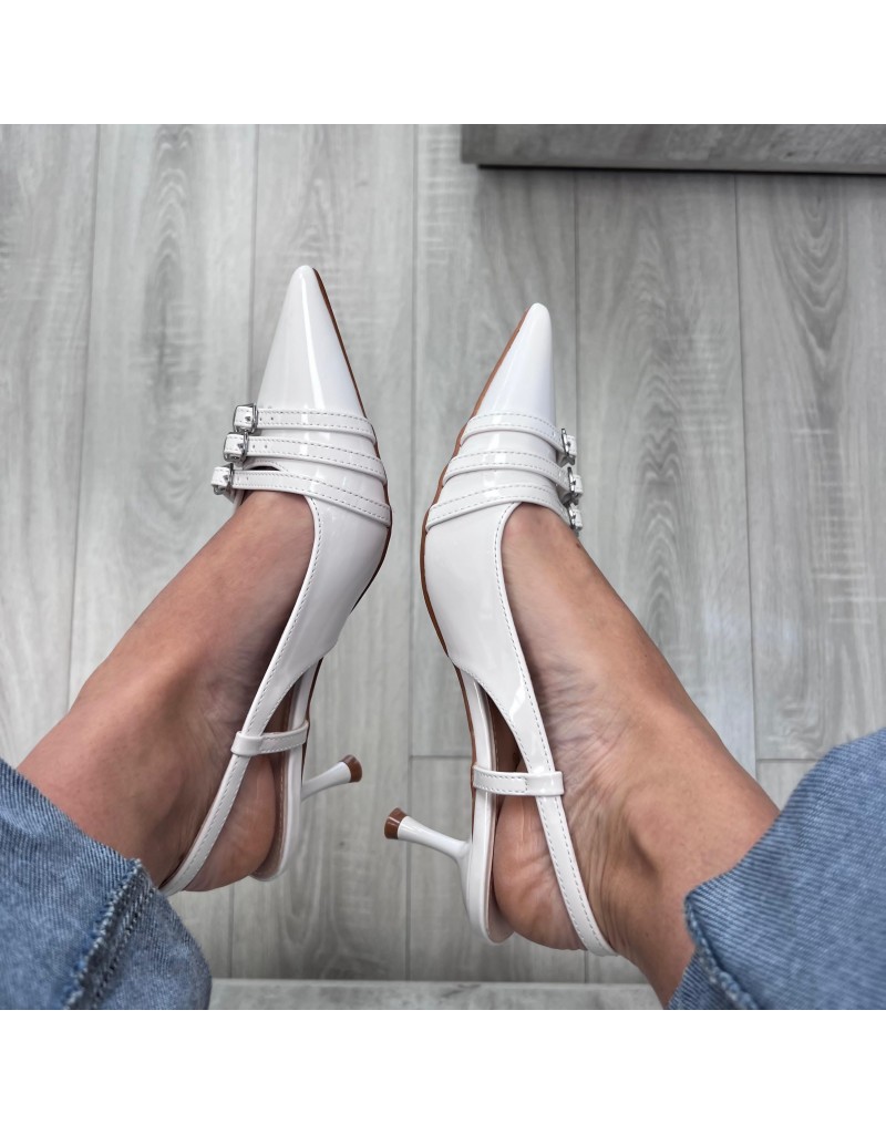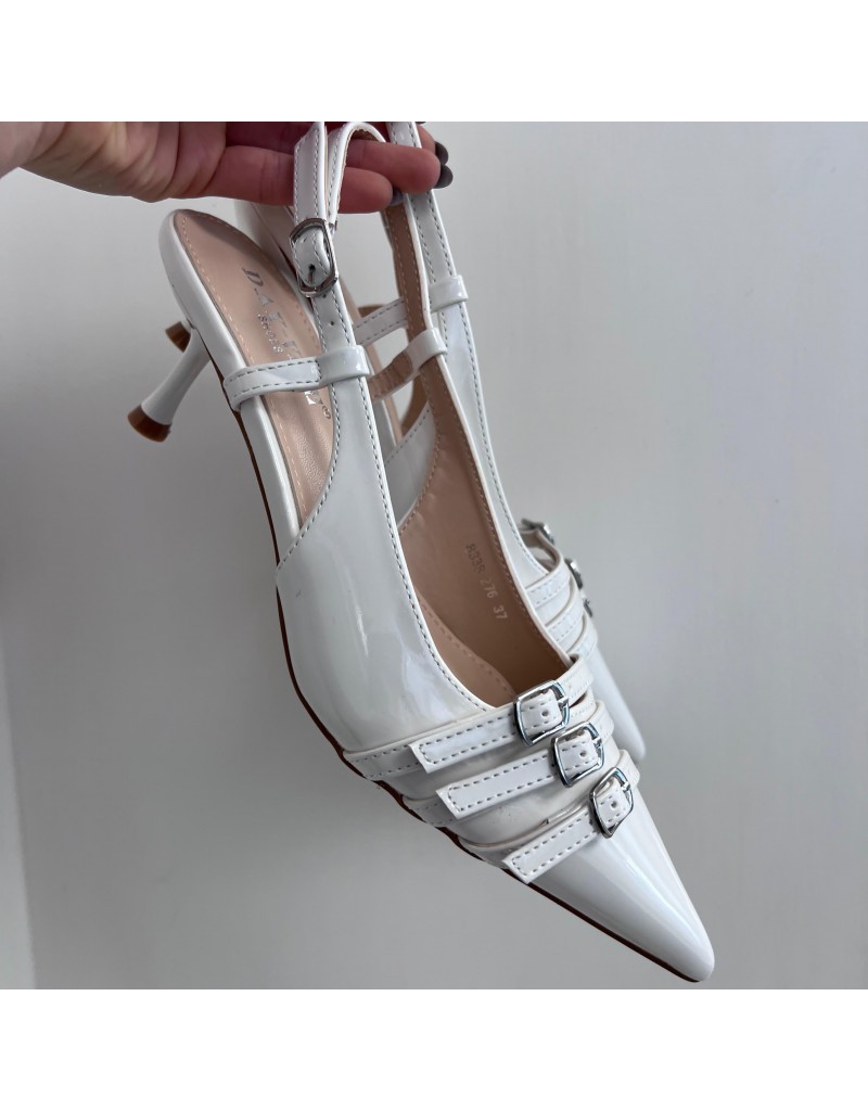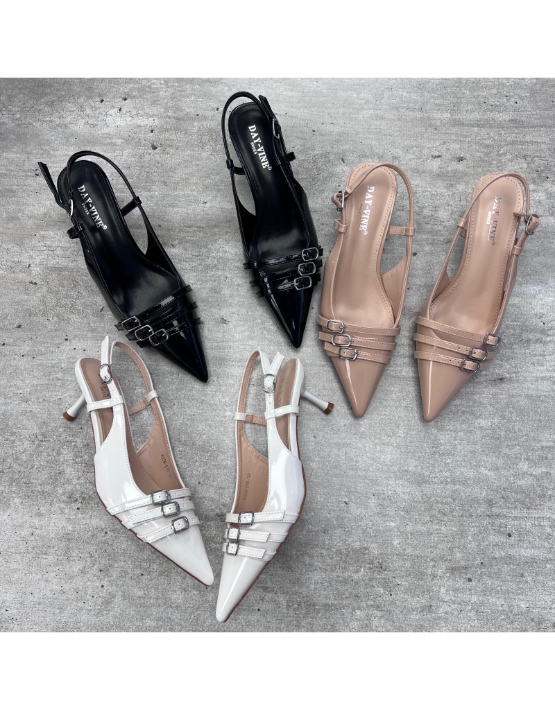 Dècolletè con 3 fibbiette in ecopelle.