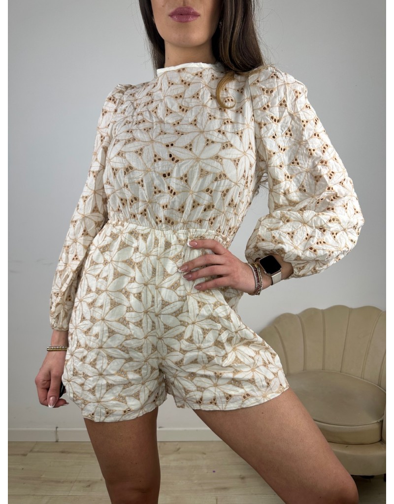 Tutina in total pizzo con maniche lunghe e short.