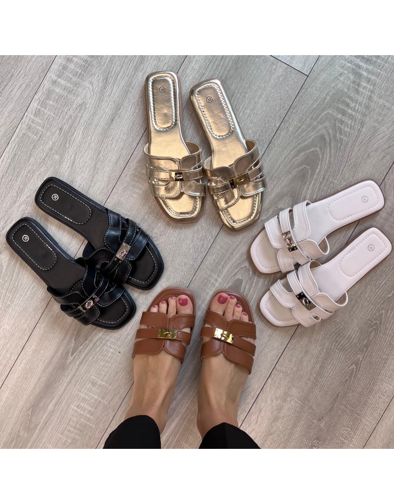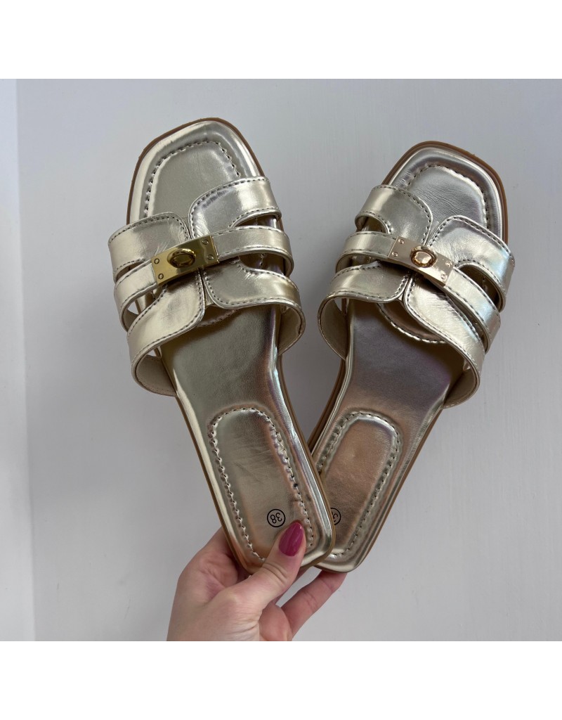 Ciabatta con fondo in ecopelle e fascia con cindolo.