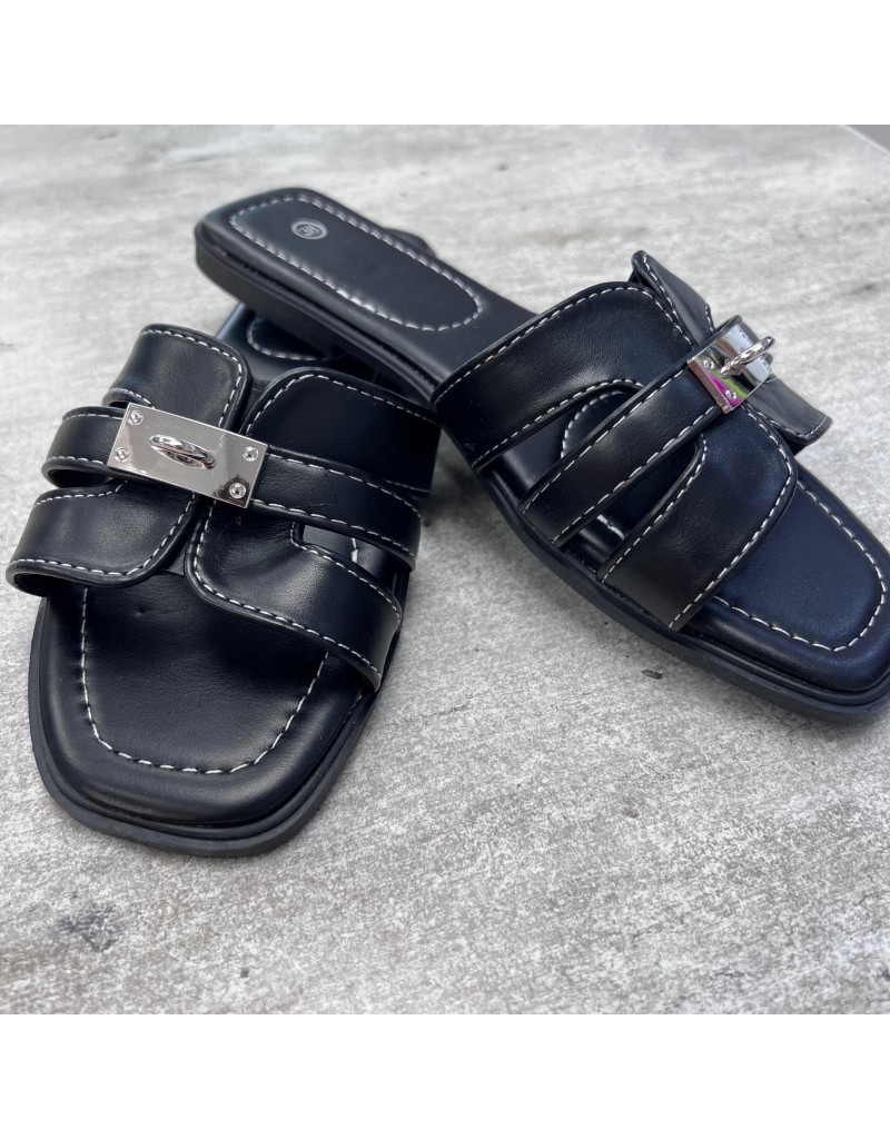 Ciabatta con fondo in ecopelle e fascia con cindolo.