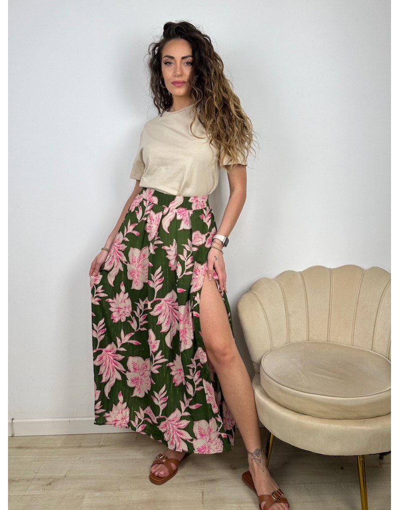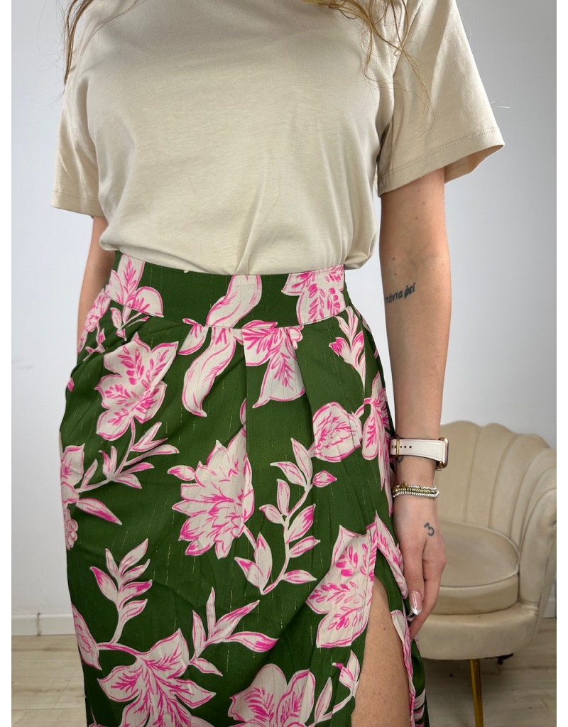 Gonna a fantasia con spacco decentrato. Molla in vita.