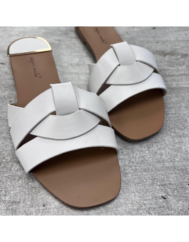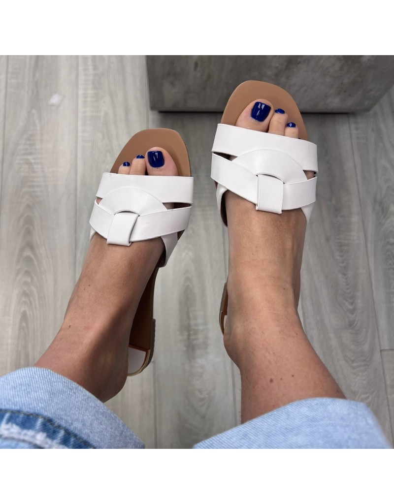 Ciabatte con fascia incrociata. Tessuto Similpelle.