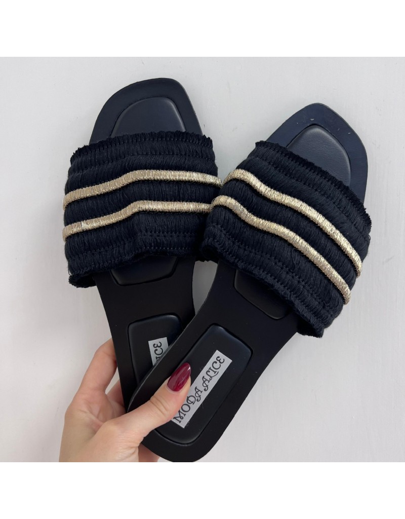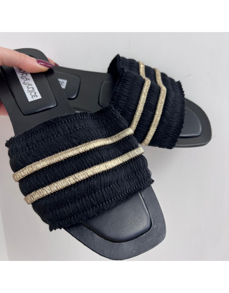 Ciabatte con fascia in rafia.